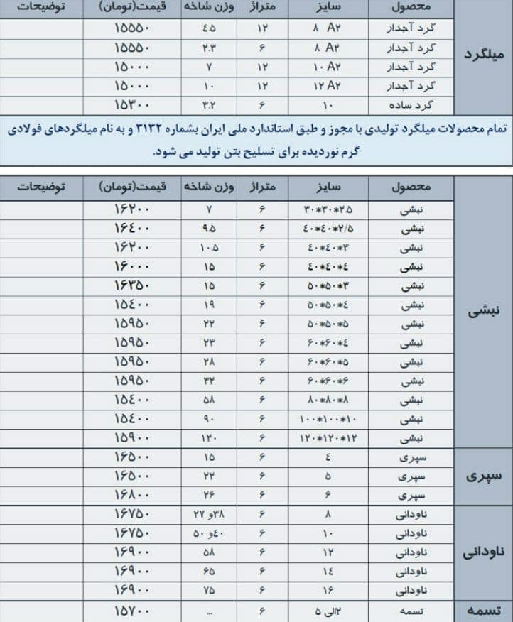 فولاد شاهرود میلگرد ۱۰: ۱۶۳۰۰۰ میلگرد ۱۲: ...