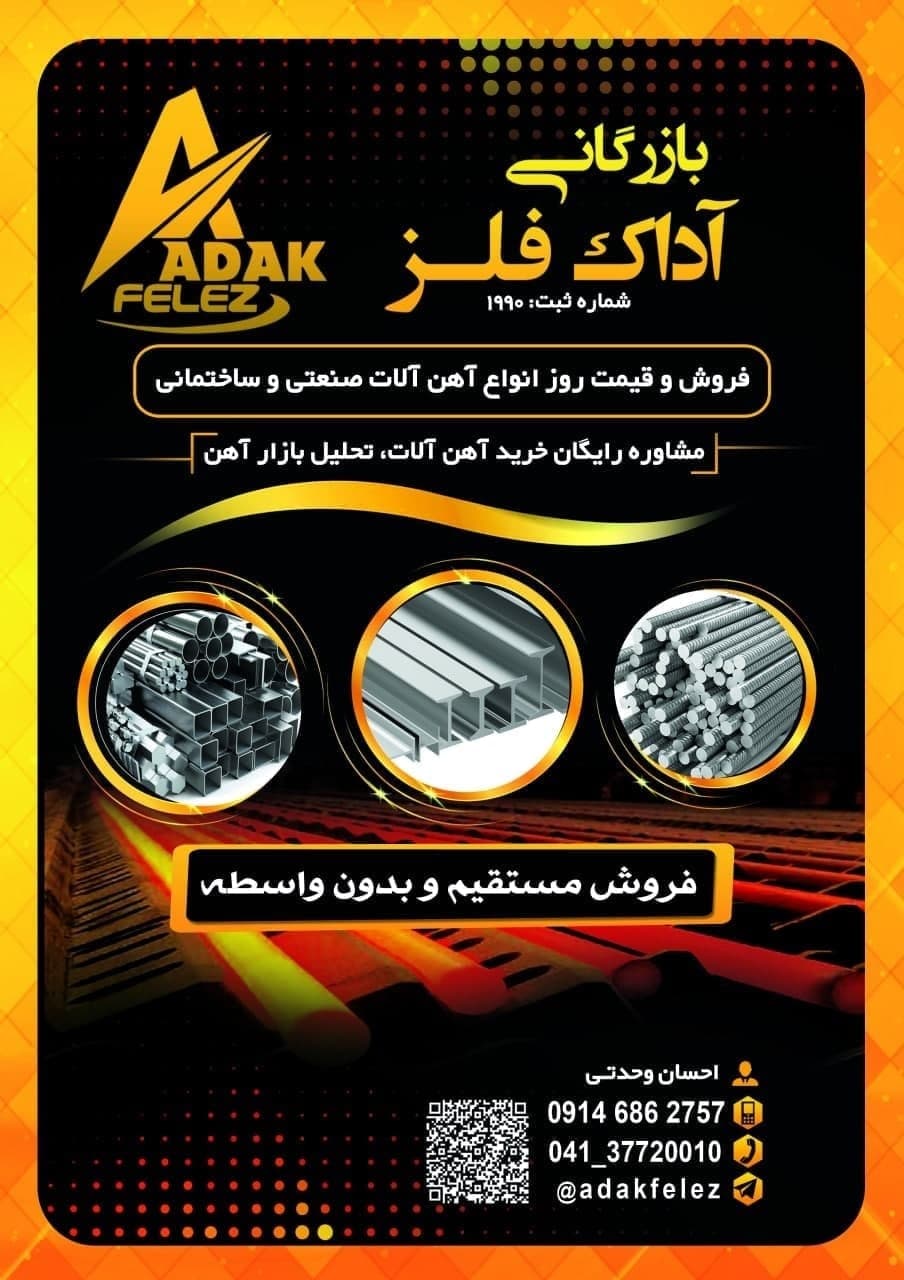 ✳️بازرگانی #آداک فلز 💢فروش مستقیم و بدون واسطه انواع میلگرد، تیرآهن،نبشی و ناودانی 🔴فروش ویژه محصولات: 🔹ظفر بناب 🔹شاهین بناب 🔹میانه 🔹آرین بویین زهرا 🔹کاوه ...