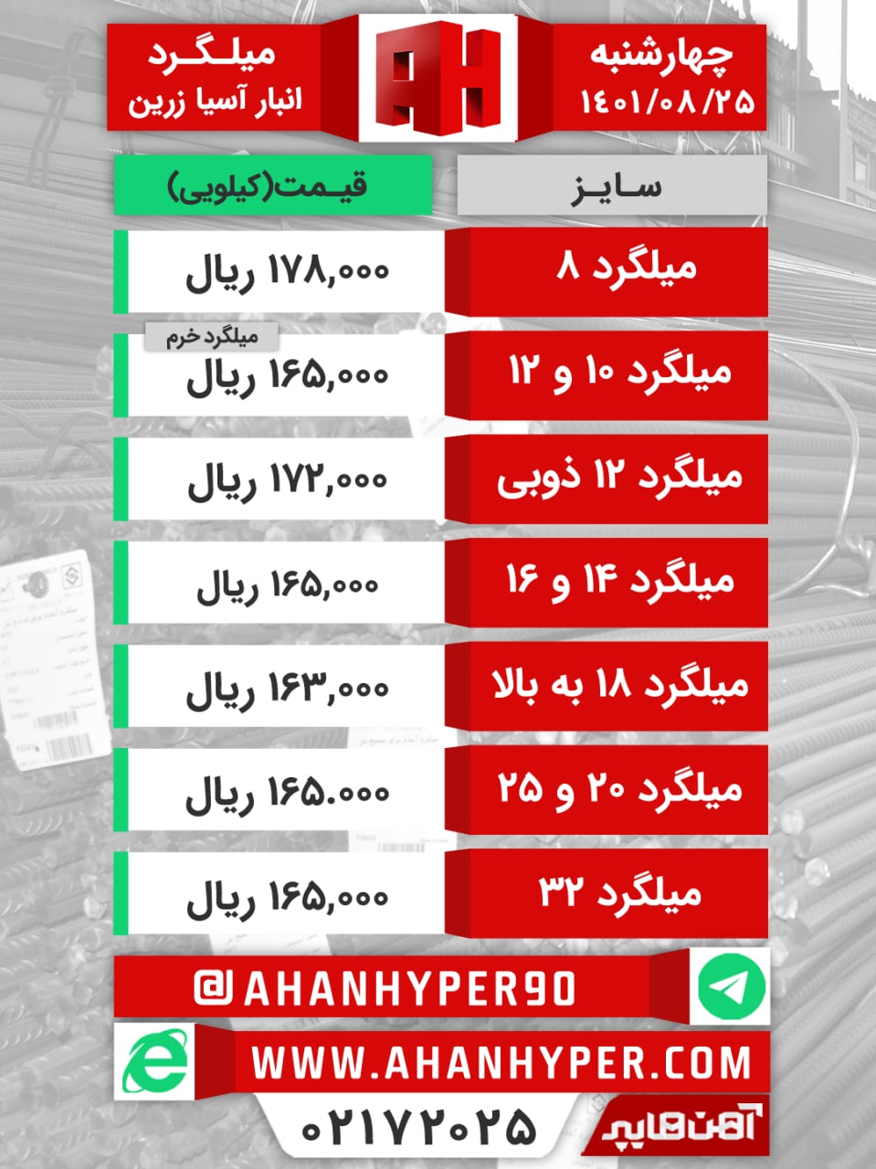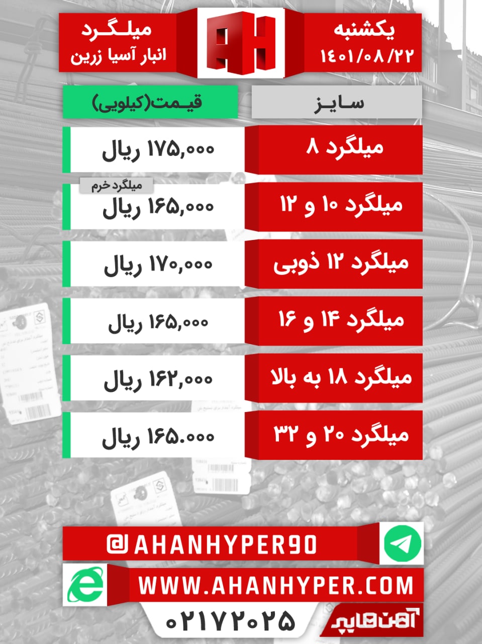 💢 فروش ویژه ـــــــــــــــــــــــــــــــــــــــــــــــــــــــــ میلگرد #امیرکبیر A4 سایز ۱۸ و ۲۲ ۱۶۳.۰۰۰ ریال ــــــــــــــــــــــــــــــــــــــــــ ...