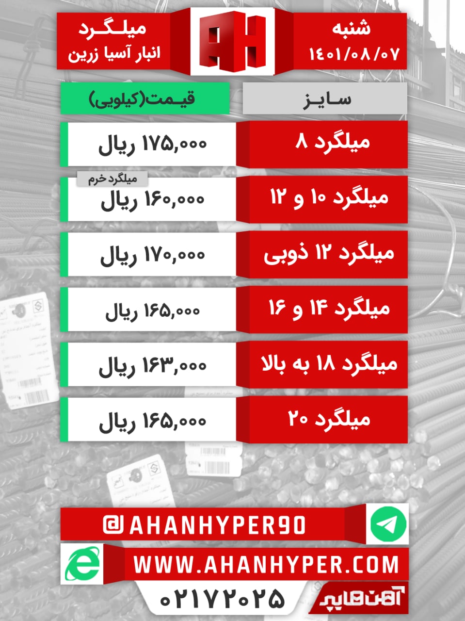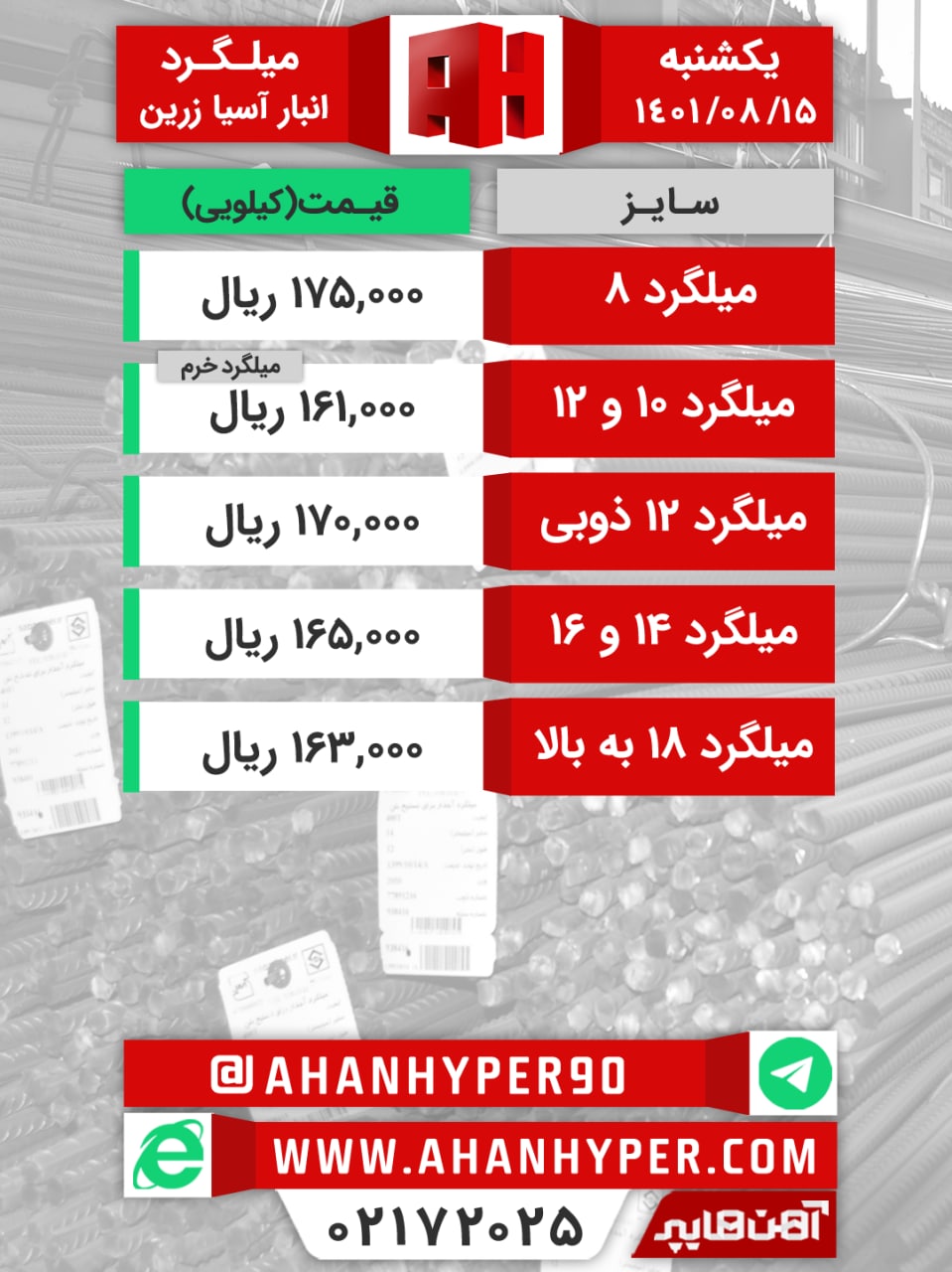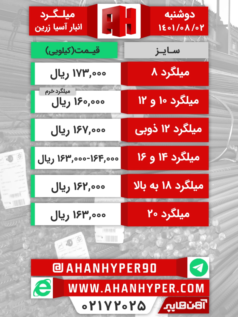 ♦️ دوشنبه ۲ آبانماه ۱۴۰۱ #قیمت_میلگرد ذوب آهن و متفرقه (انبار آسیا زرین) ✅قیمت ها با تایید میباشد.