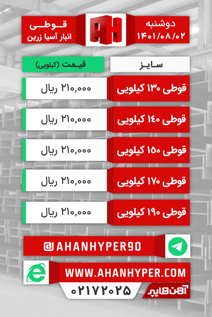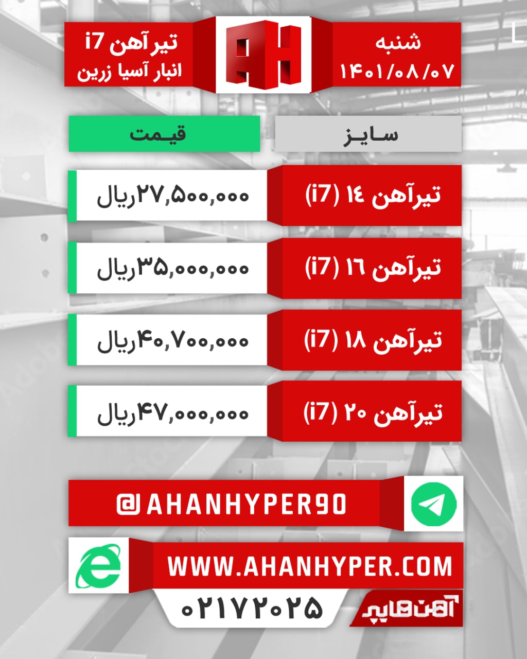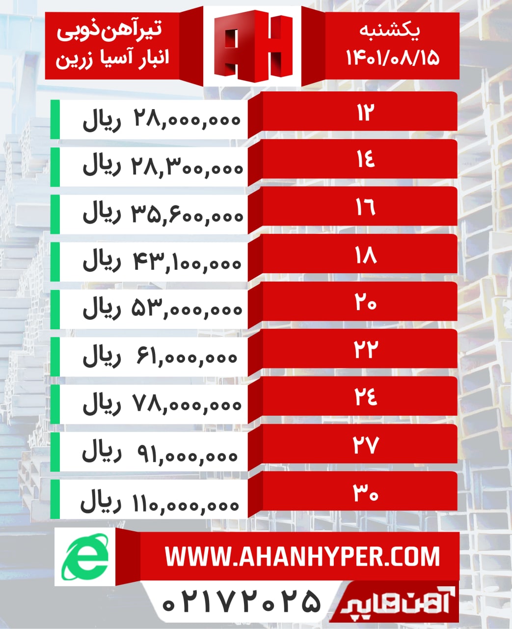 شنبه ۷ آبانماه ۱۴۰۱ #قیمت_تیرآهن ذوب آهن (انبار آسیا زرین) ✅قیمت ها با تایید میباشد.