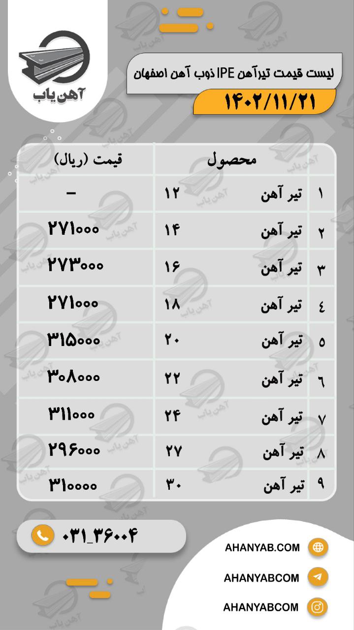 اعلام موجودی نبشی آهن یاب لیست کالای فولاد ناب تبریز : 📅 دوشنبه : ۱۴۰۲/۱۱/۲ (ثبات قیمت) ♦️ نبشی ۴*۴ 💵24350 تومان ♦️نبشی ۵*۵ 💵24150 تومان ♦️ نبشی۶*۶   💵249 ...