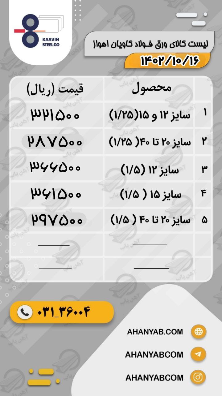 اعلام موجودی میلگرد آهن یاب لیست کالای فولاد سیادن ابهر : 📅 یکشنبه : ۱۴۰۲/۱۱/۱ ( افزایش قیمت) ♦️ میلگرد ۱۰ A2 💵23350 تومان 📈 150 ♦️ میلگرد ۱۲ A2 💵23350 تو ...