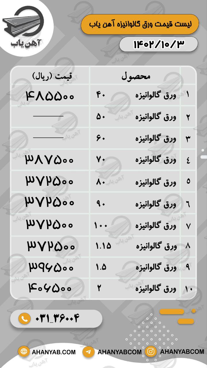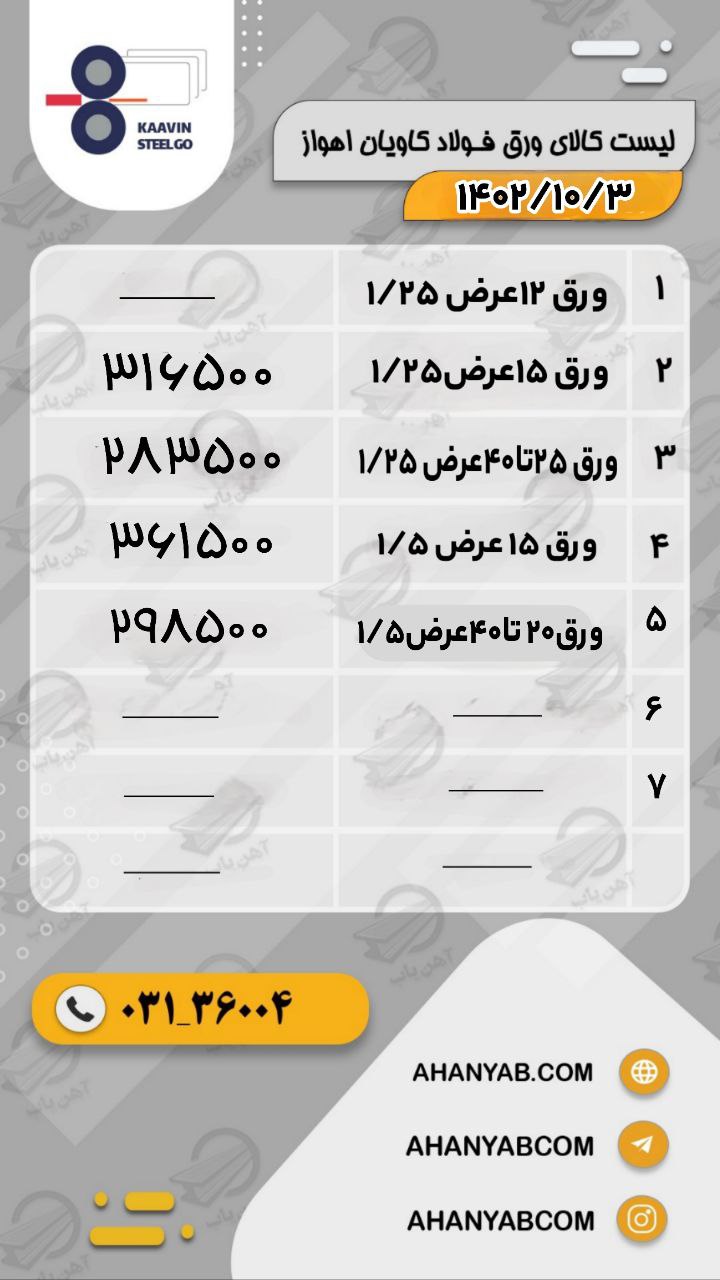 اعلام موجودی میلگرد آچدار آهن یاب ❇️لیست کالای فولاد آناهیتا گیلان : 📅 سه شنبه : ۱۴۰۲/۹/۲۸ (ثبات قیمت) ♦️ میلگرد ۱۰ A2 💵24350 تومان ♦️ میلگرد ۱۲ A3 💵24350 ...