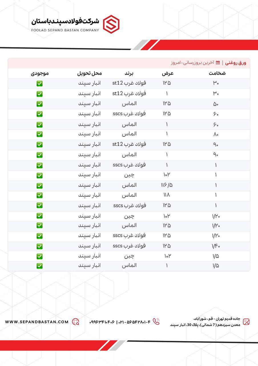اعلام موجودی ورق گالوانیزه و رنگی