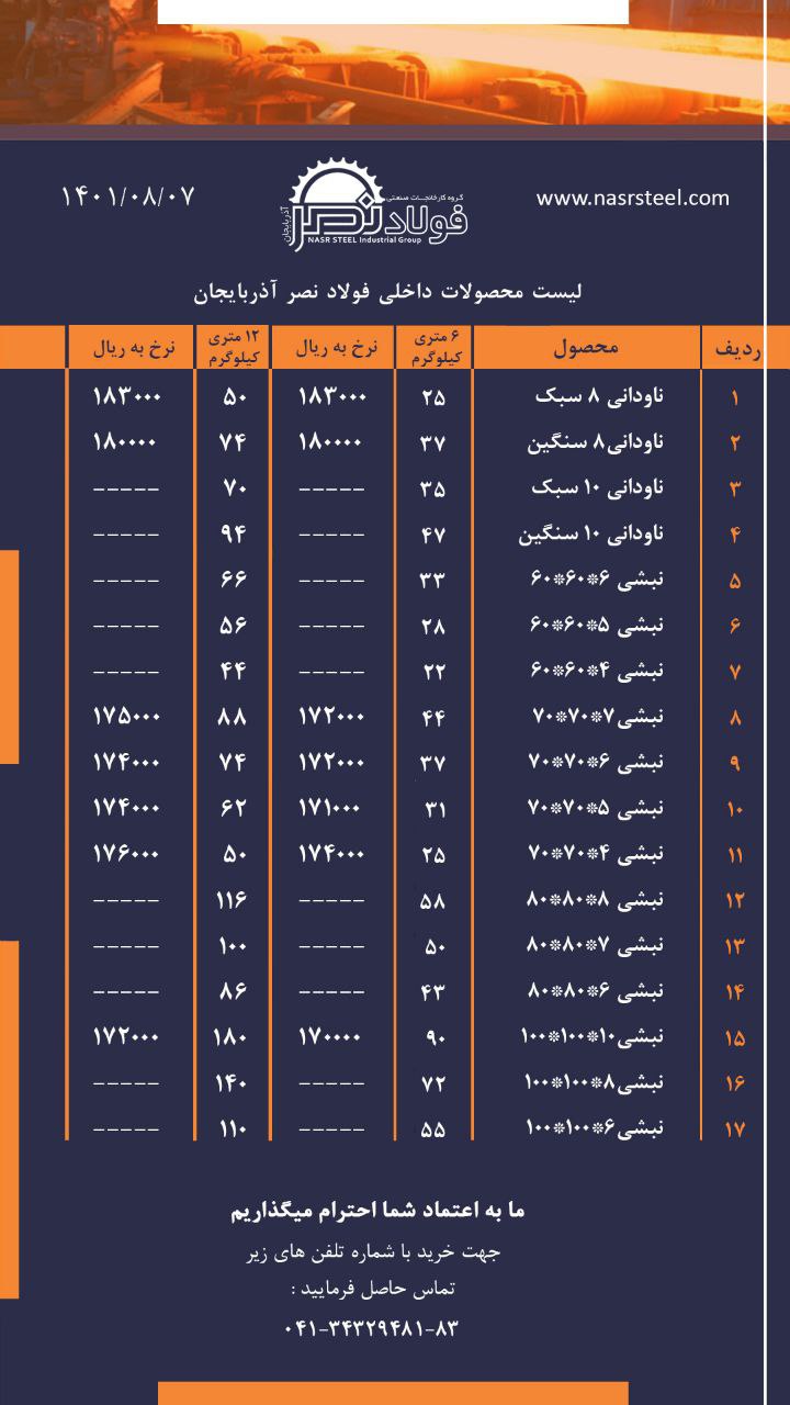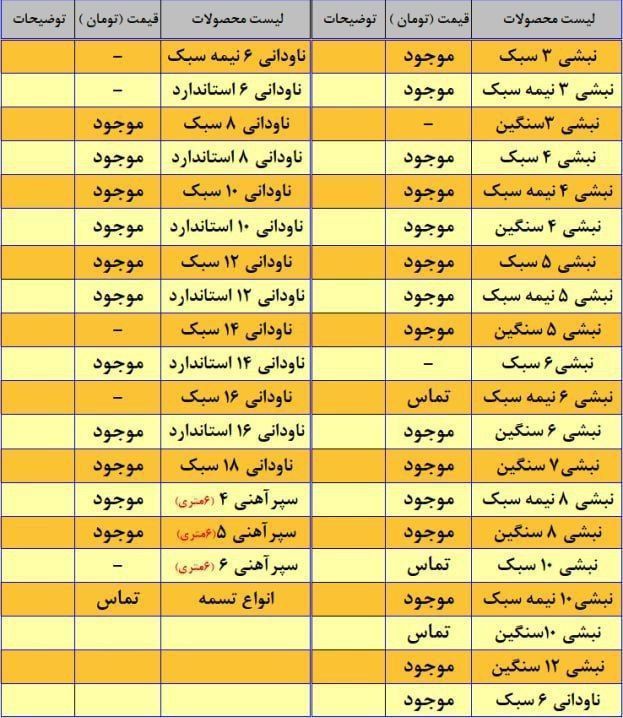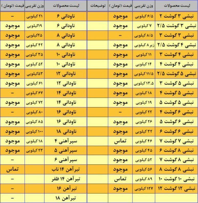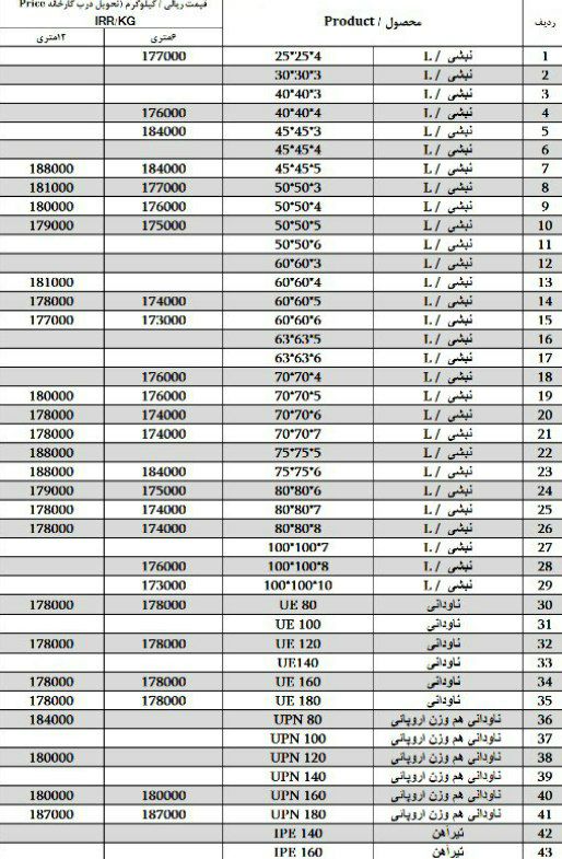 🔹فولاد جاوید بناب 🔹نبشی 40*3 سبک : ۲۲۷۰۰۰ ریال 🔹نبشی 40*3 : ۲۲۱۹۰۰ ریال 🔹نبشی 40*4 سبک : ۲۲۱۷۰۰ ریال 🔹نبشی 40*4 : ...
