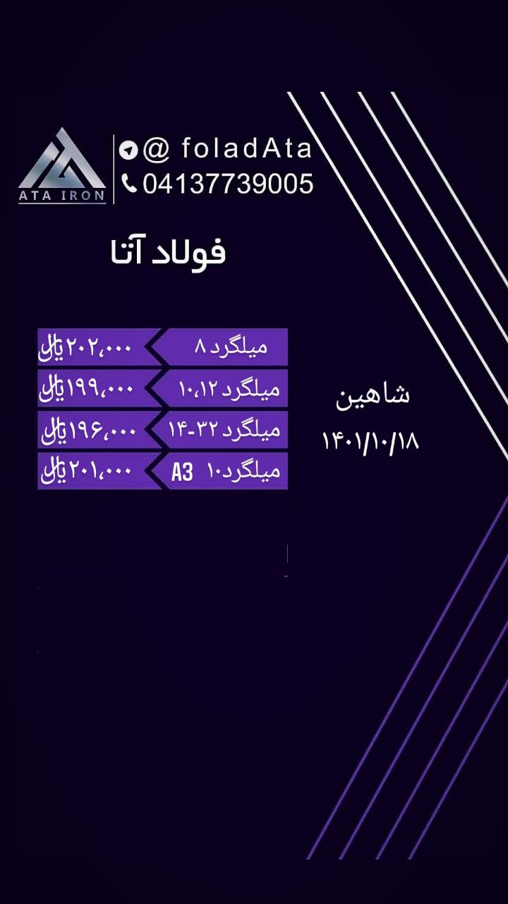 🔹️ذوب آهن آرمان آسیا 🔹️سایز ۱۰ ۱۶۰۰۰۰﷼ 🔹️سایز ۱۲ ۱۶۰۰۰۰﷼ 🔹️سایز ۱۶ ۱۵۸۰۰۰﷼ @foladAta