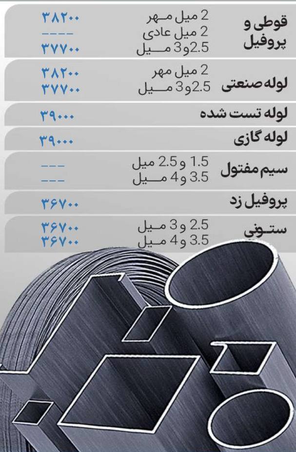 🔸میلگرد ۸ آجدار:۲۵۶۰۰۰ 🔸میلگرد ۱۰و۱۲ آجدار:۲۵۳۰۰۰﷼ 🔸میلگرد ۱۴تا۲۵ آجدار : ۲۵۰۰۰۰ ﷼
