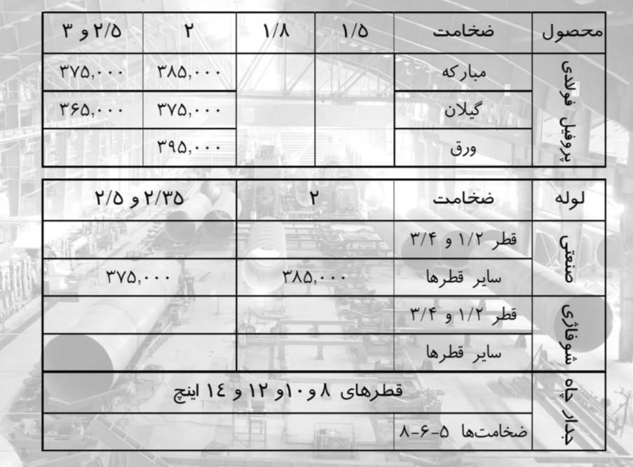 🔸 میلگرد ۸ آجدار: ۲۵۴۰۰۰﷼ 🔸 میلگرد ۱۰و۱۲ آجدار: ۲۵۱۰۰۰﷼ 🔸️ میلگرد ۱۴تا۳۲ آجدار:۲۴۷۰۰۰﷼