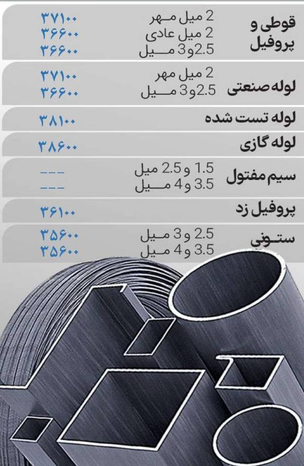 🔸 میلگرد ۸ آجدار: ۲۵۵۰۰۰﷼ 🔸 میلگرد ۱۰و۱۲ آجدار: ۲۴۵۰۰۰﷼ 🔸میلگرد ۱۴تا۲۵ آجدار: ۲۴۰۰۰۰﷼