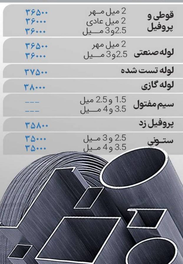 🔸 ناودانی ۸سبک:۲۶۳۰۰۰﷼ 🔸 ناودانی ۱۰سبک: ۲۶۸۰۰۰۰﷼ 🔸 ناودانی ۸سنگین : ۲۶۰۰۰۰﷼ 🔸 ناودانی ۱۰ سنگین: ۲۶۲۰۰۰﷼