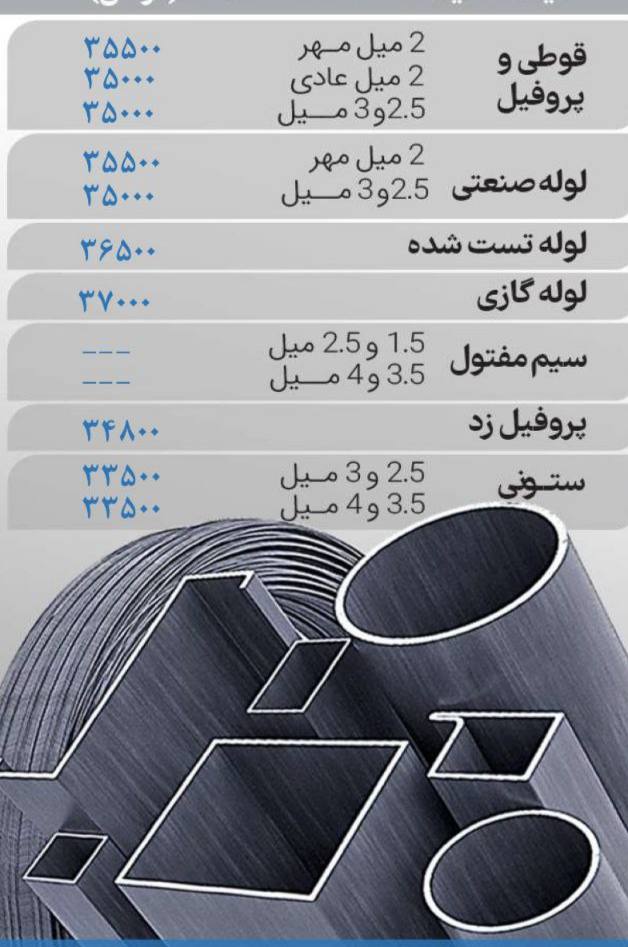 🔸 میلگرد ۸ آجدار: ۲۵۵۰۰۰﷼ 🔸 میلگرد ۱۰و۱۲ آجدار: ۲۵۰۰۰۰﷼ 🔸میلگرد ۱۴تا۲۵ آجدار: ۲۴۵۰۰۰﷼