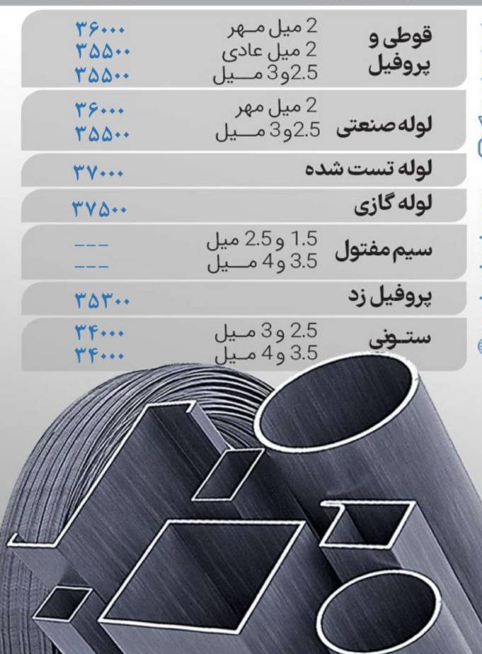 🔸 میلگرد ۸ آجدار: ۲۵۵۰۰۰﷼ 🔸 میلگرد ۱۰و۱۲ آجدار: ۲۵۰۰۰۰﷼ 🔸میلگرد ۱۴تا۲۵ آجدار: ۲۴۵۰۰۰﷼