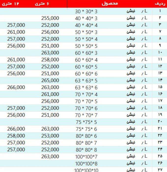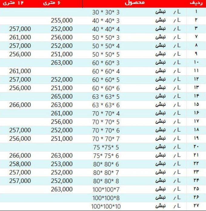 #آریان_فولادنبشی 3*۴ »»264500««« نبشی ۴*۴ »»»253500««« نبشی ۴*۵ »»»253500««« نبشی ۵*۵ »»»253500««« نبشی ۶*۶ »»» 253500««« نبشی ۷*۷ »»»253500««« نبشی ۸*۸»»»25350 ...