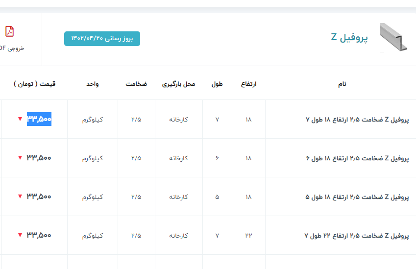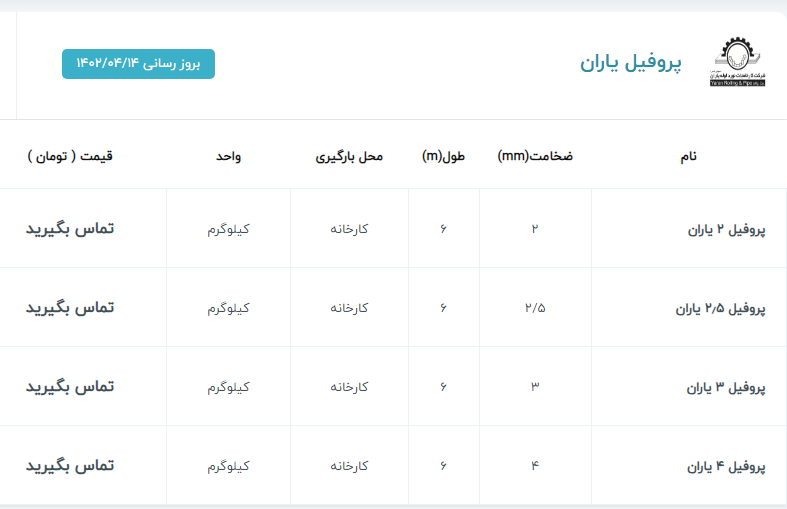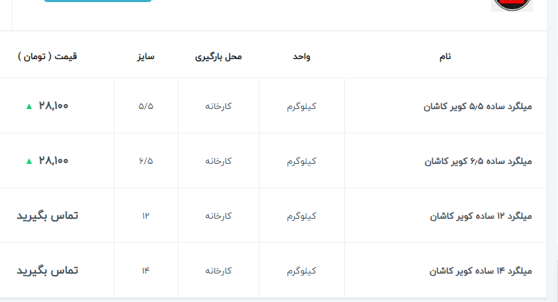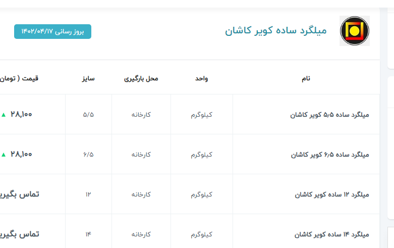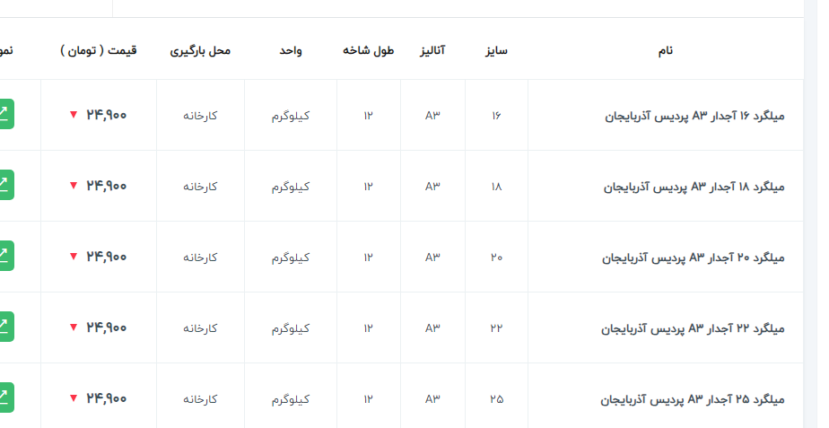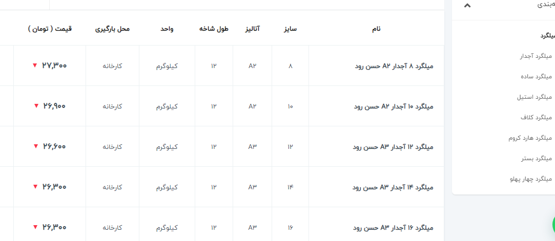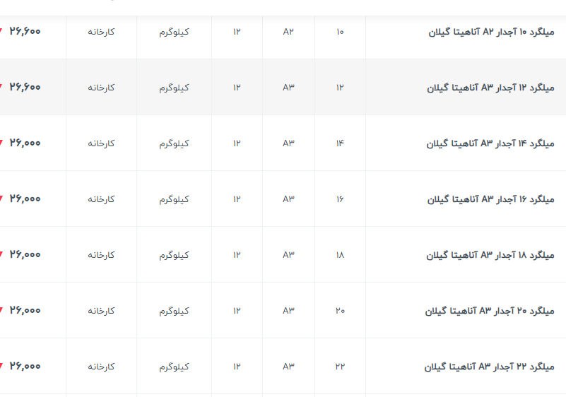 ✅ میلگرد ۲۰ کیان ابهر : ۲۶۳/۰۰۰✅ ۱۴ الی ۲۸ نیشابور : ۲۷۵/۰۰۰✅۱۴ و ۱۸ ذوب : ۲۷۰/۰۰۰✅ ۱۰ خرمدشت : ۲۷۰/۰۰۰⭕️ ۱۴ الی ۲۸ میلگرد نیشابور : ۲۷۴/۵۰۰ ⭕️