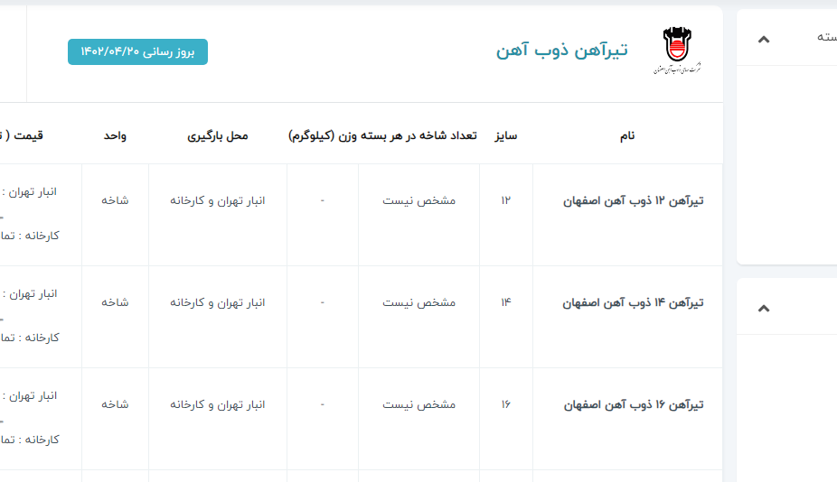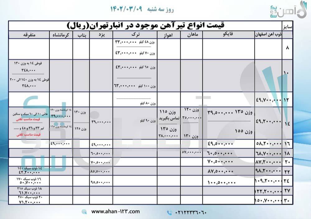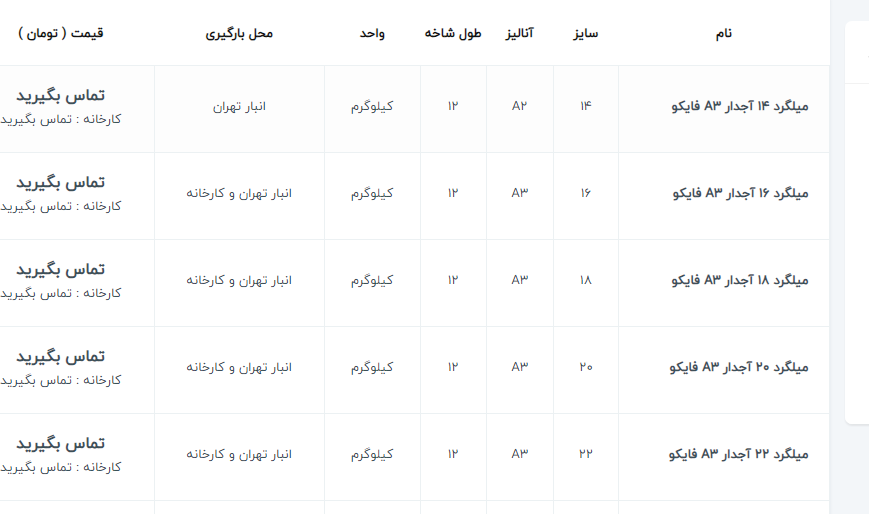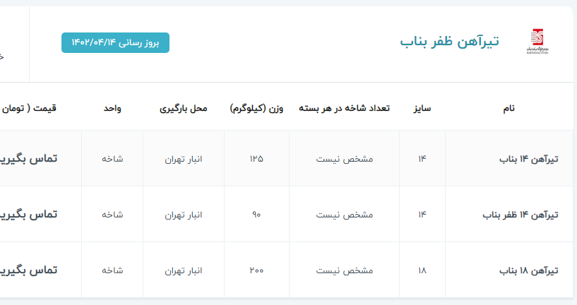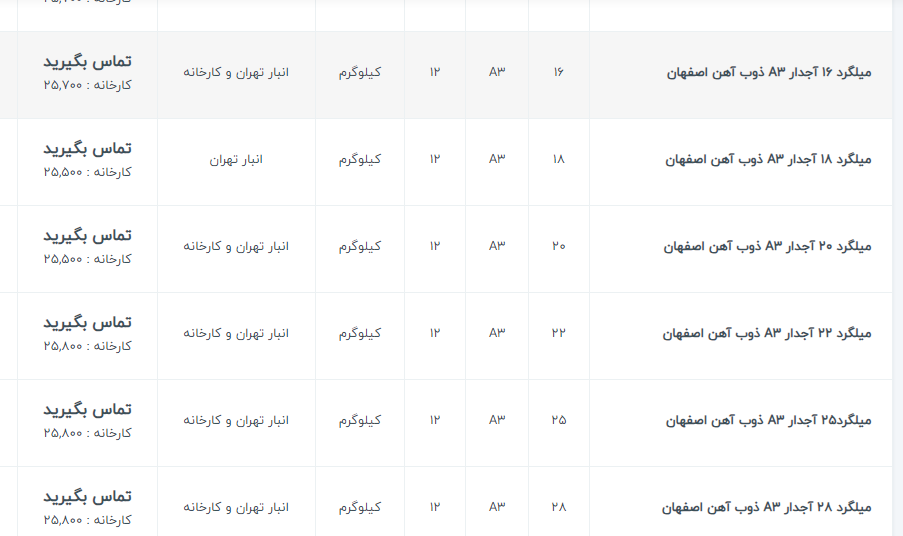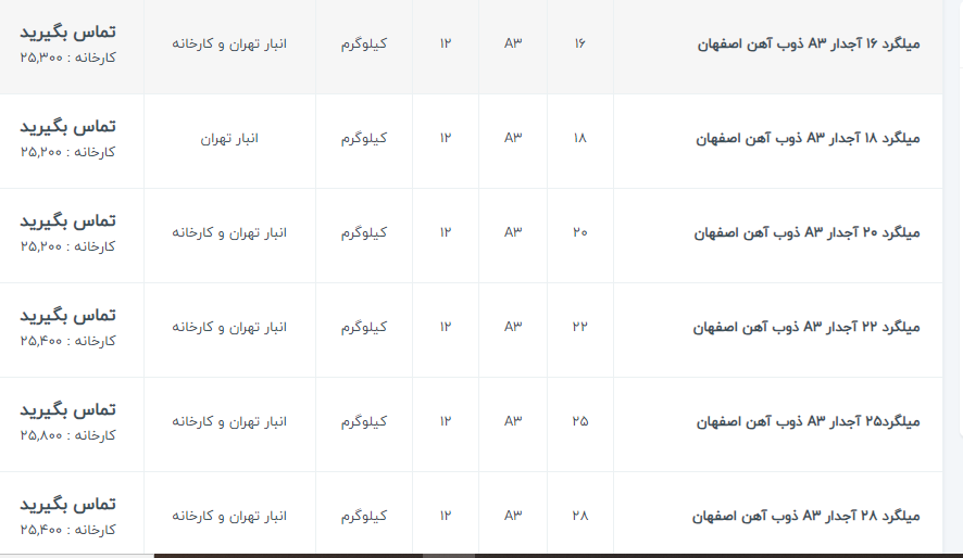 اعلام موجودی میلگرد اجدار آهن 123 سامانه جامع فروش آهن آلات 021-22336060 خط ويژه