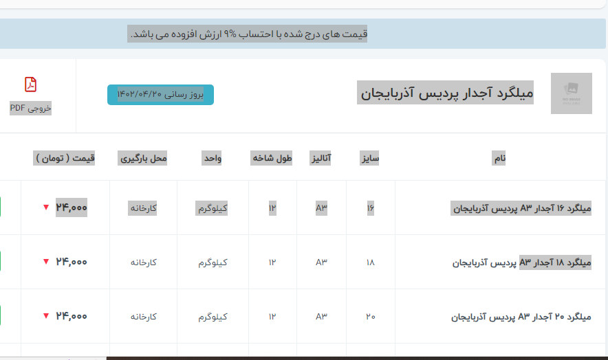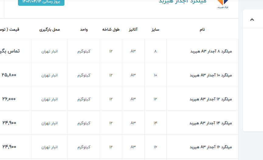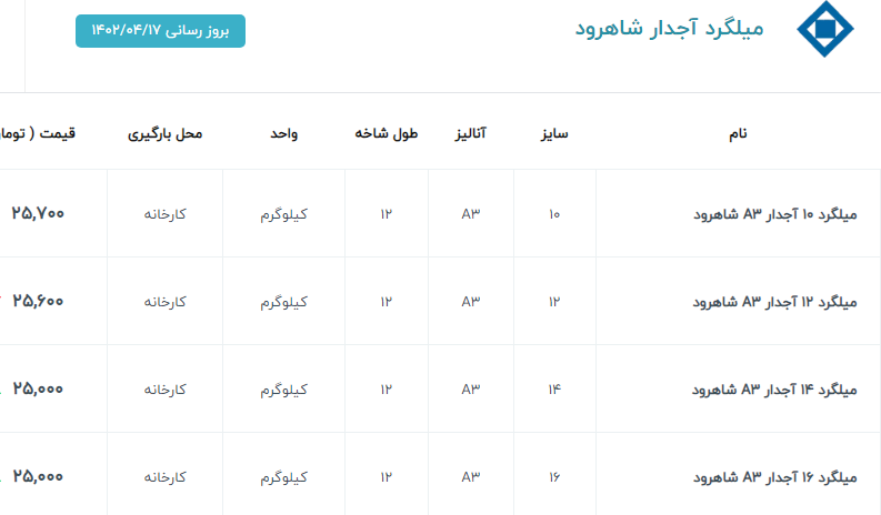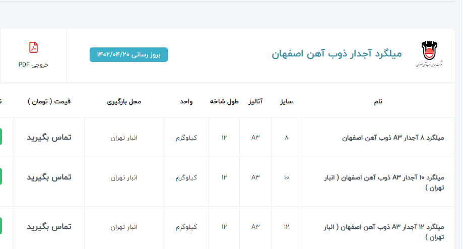 اعلام موجودی میلگرد آجدار