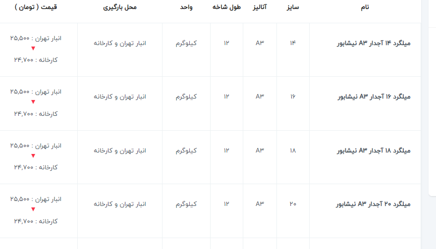 ✅ میلگرد اروند موجود در کارخانه : ۲۵۴/۰۰۰✅ میلگرد نیشابور موجود در کارخانه : ۲۷۰/۰۰۰