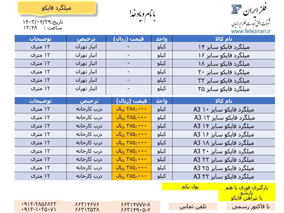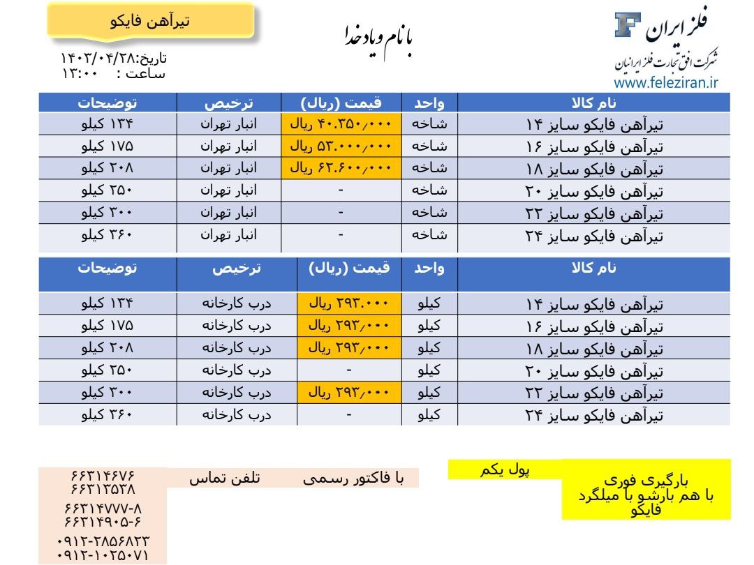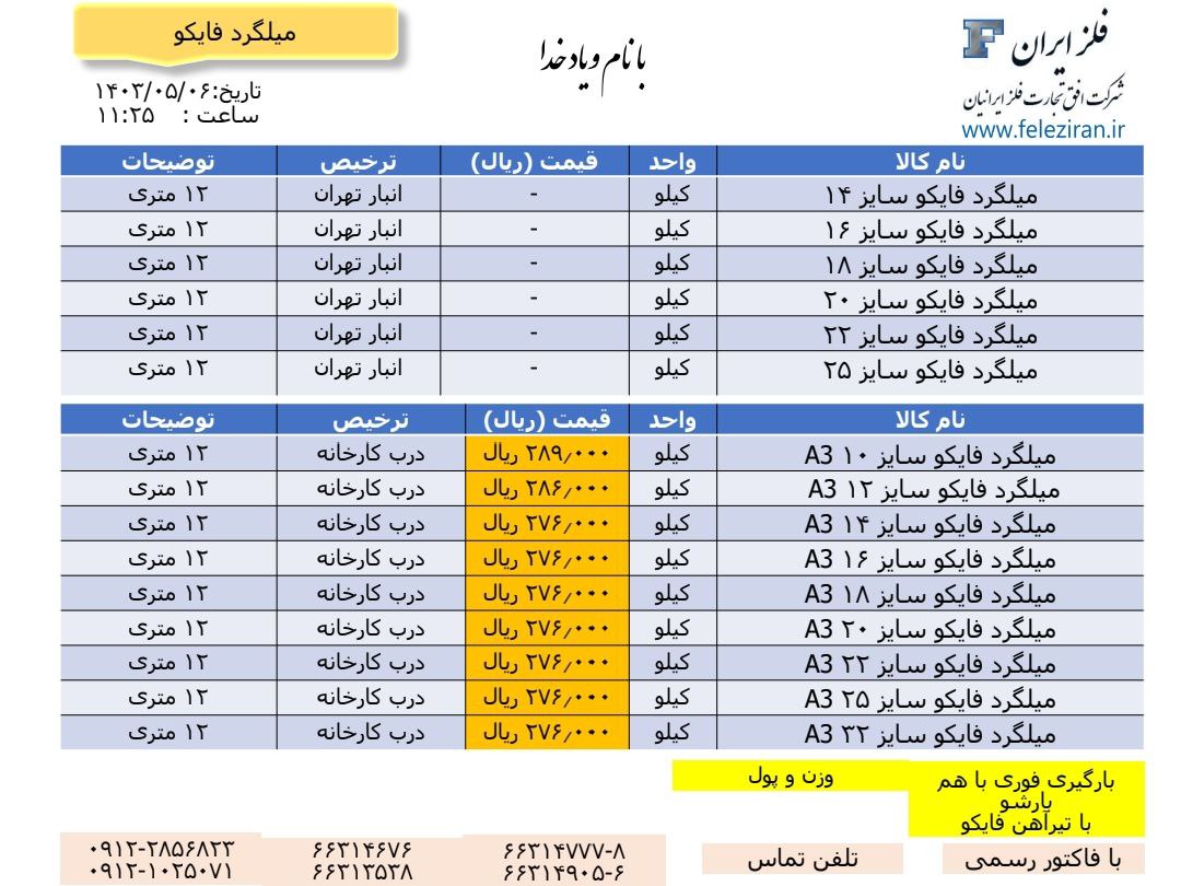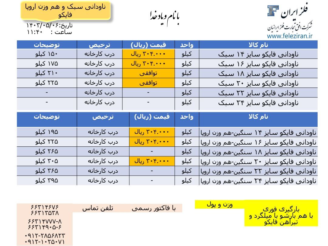 Web Site : www.feleziran.ir Ceo : m.abdinezhad tel: 021-66314777-8 66314676 66313538 66314905-6