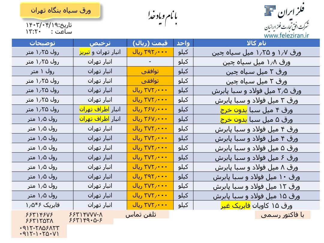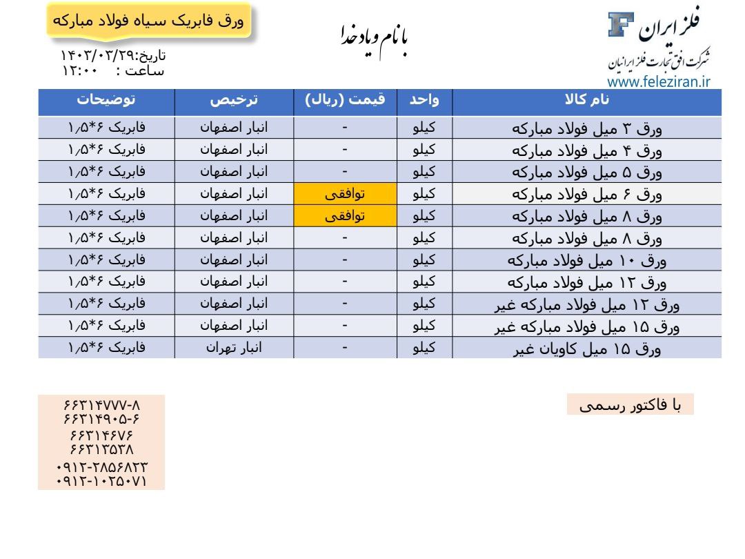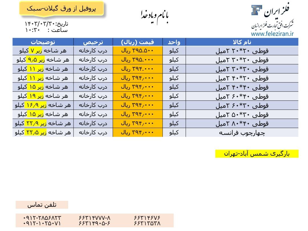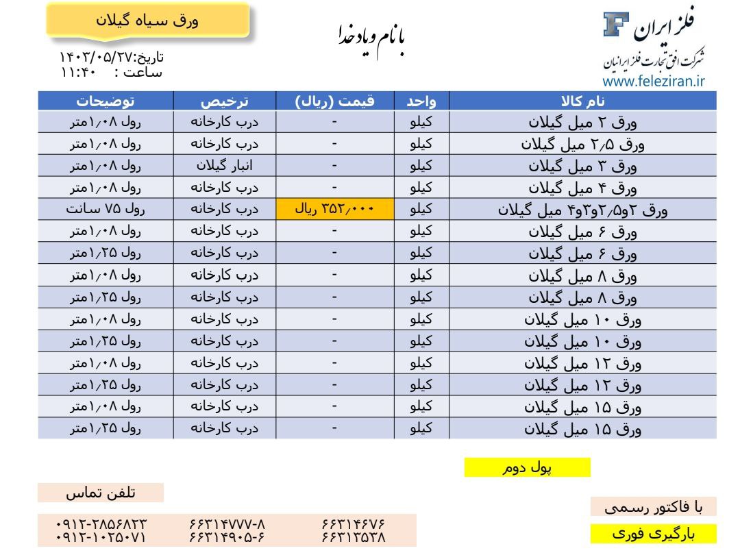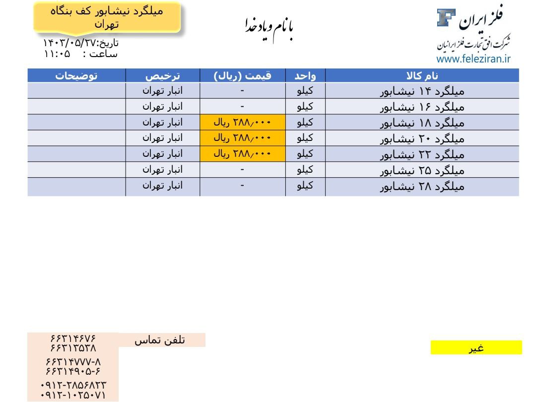 Web Site : www.feleziran.ir Ceo : m.abdinezhad tel: 021-66314777-8 66314676 66313538 66314905-6