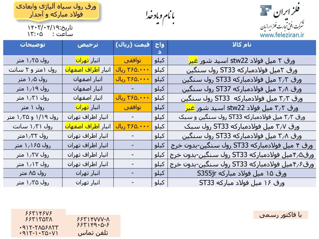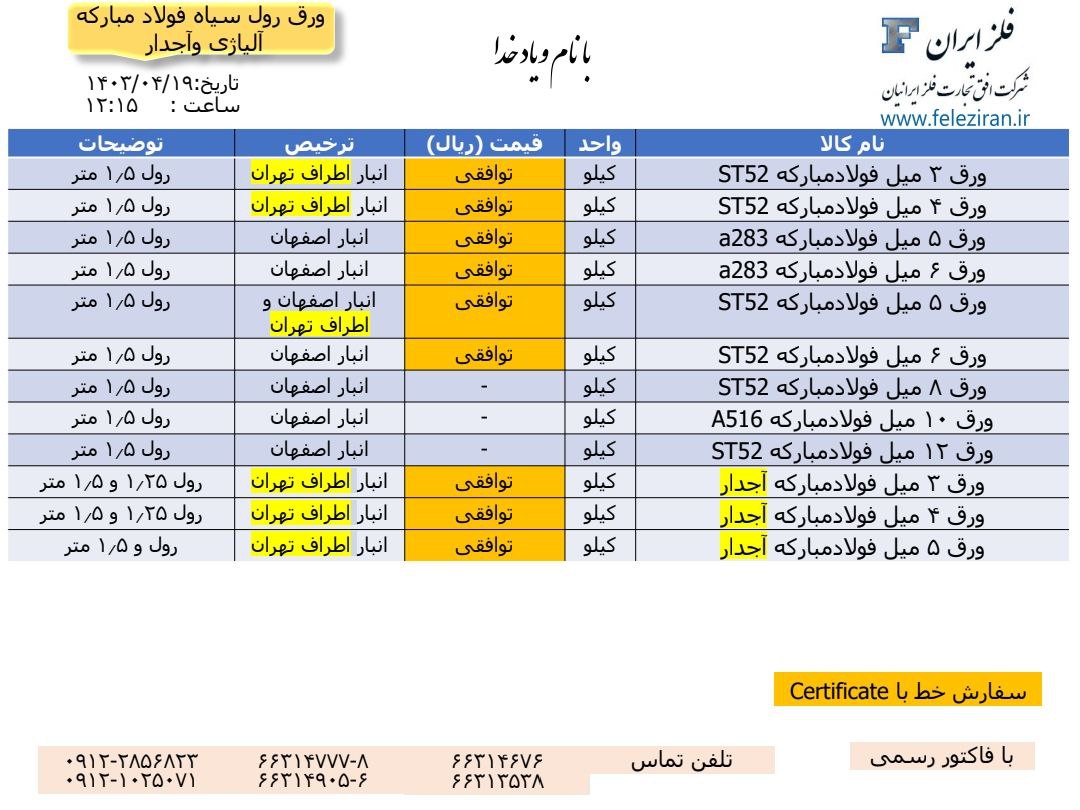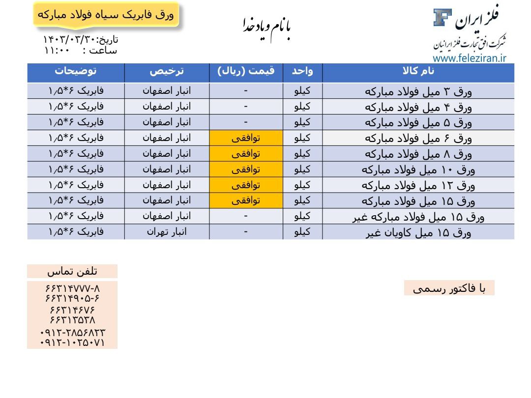 اعلام موجودی ورق آلیاژی