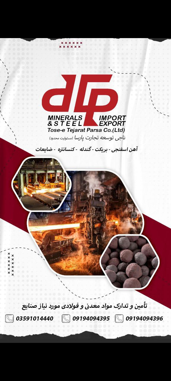 📝⚜️#ناجی_توسعه_تجارت_پارسا 💠بازرگانی ناجی توسعه تجارت پارسا فعال در زمینه بازرگانی 🔸مواد معدنی شامل: 🌀 آهن اسفنجی، بریکت، گندله، زغال سنگ، سنگ آهن، کنسانتره ...