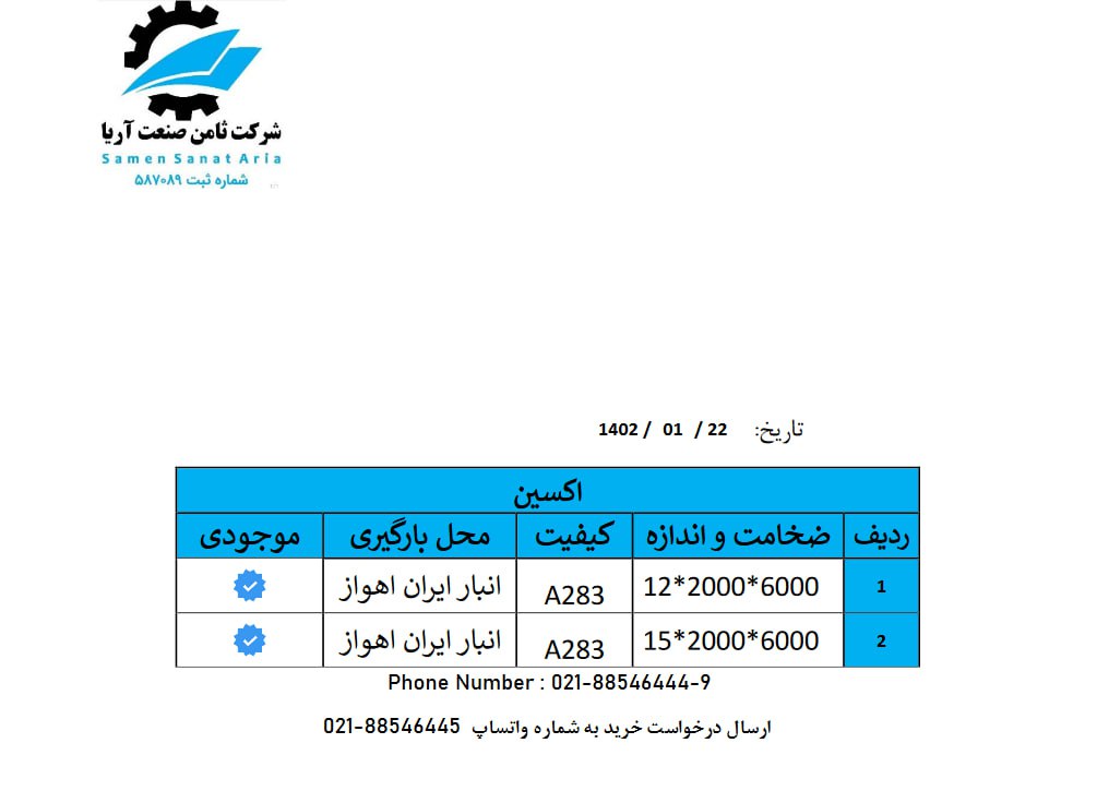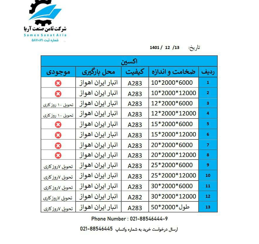 💠 تولیدی بازرگانی #ثامن_صنعت_آریا با ۲۰ سال تجربه در عرضه مستقیم محصولات فولادی ارائه انواع: ✅ورق گرم مبارکه، اکسین،کاویان ،گیلان ✅ ورق گالوانیزه و رنگی ...