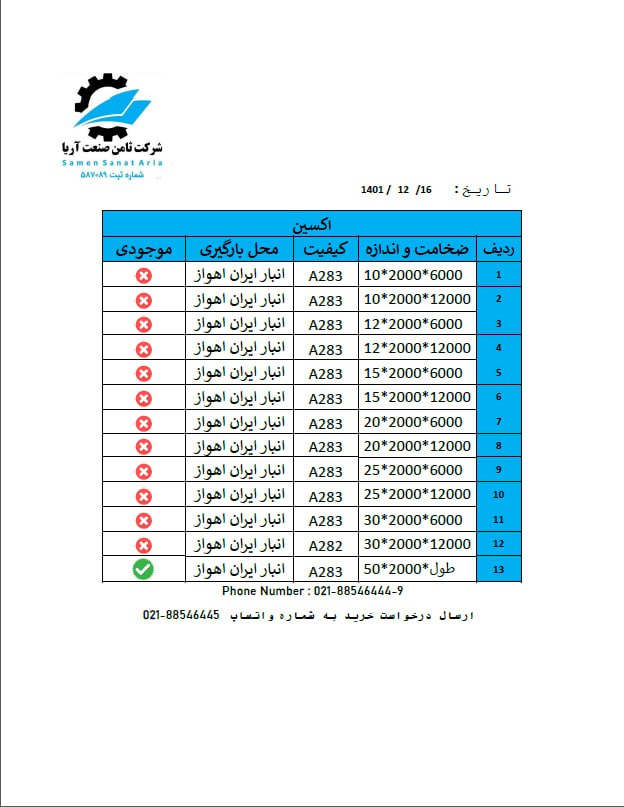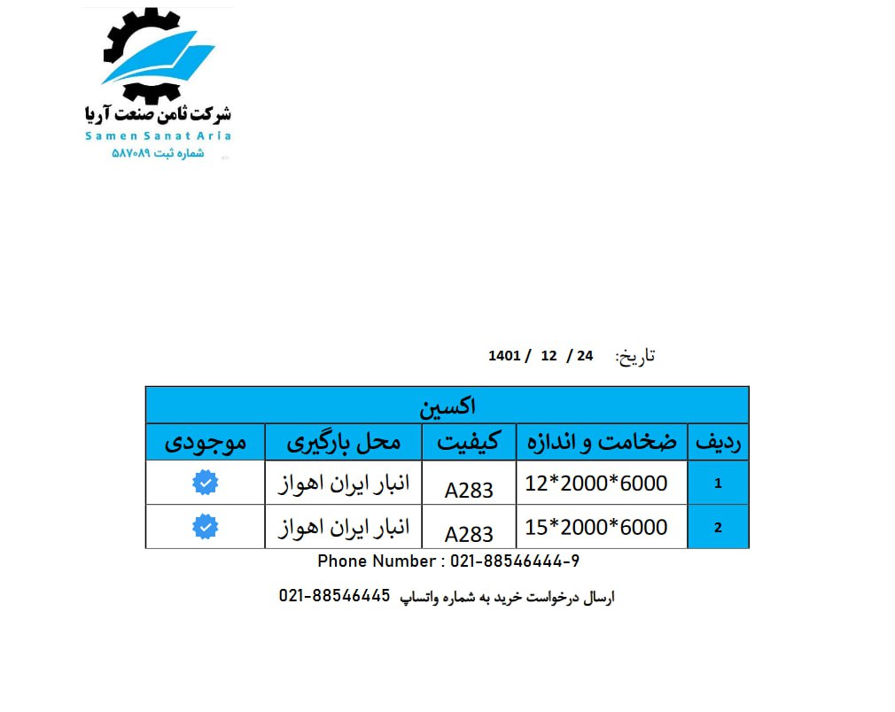 💠 تولیدی بازرگانی #ثامن_صنعت_آریابا ۲۰ سال تجربه در عرضه مستقیم محصولات فولادیارائه انواع: ✅ورق گرم مبارکه، اکسین،کاویان ،گیلان ✅ ورق گالوانیزه و رنگی و روغنی ، ...