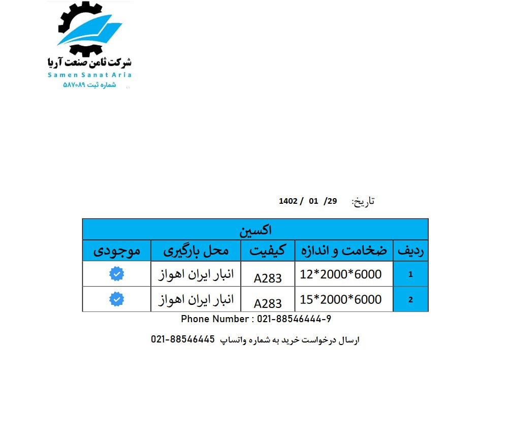 💠 تولیدی بازرگانی #ثامن_صنعت_آریا با ۲۰ سال تجربه در عرضه مستقیم محصولات فولادیارائه انواع: ✅ورق گرم مبارکه، اکسین،کاویان ،گیلان ✅ ورق گالوانیزه و رنگی و ر ...