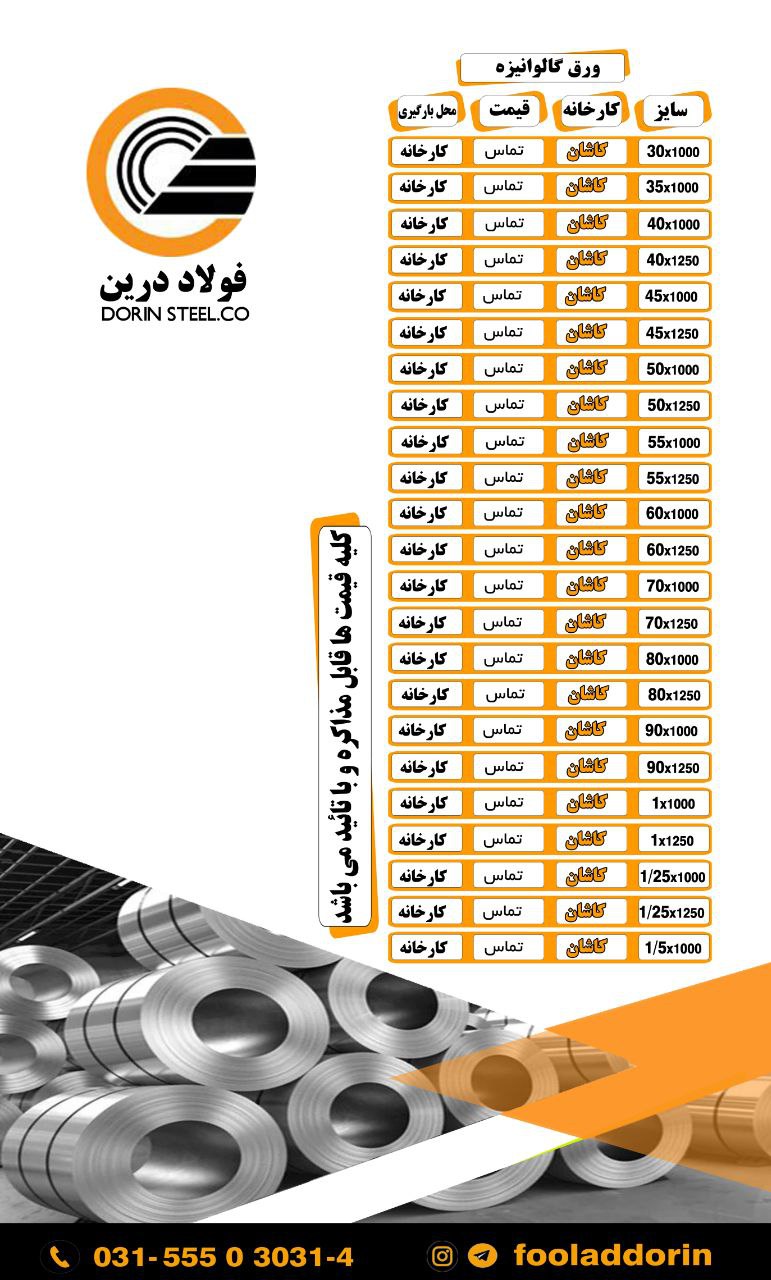 # آهن_فولاد_درین_خاورمیانه ⚜️عرضه کننده ورق گالوانیزه امیرکبیر کاشان ⚜️🔸از ضخامت 30 الی 1/5 📍در کارخانه 📍 انبار کاشان 📍تهران ورق های فوق یصورت برش خورده ، کرکر ...