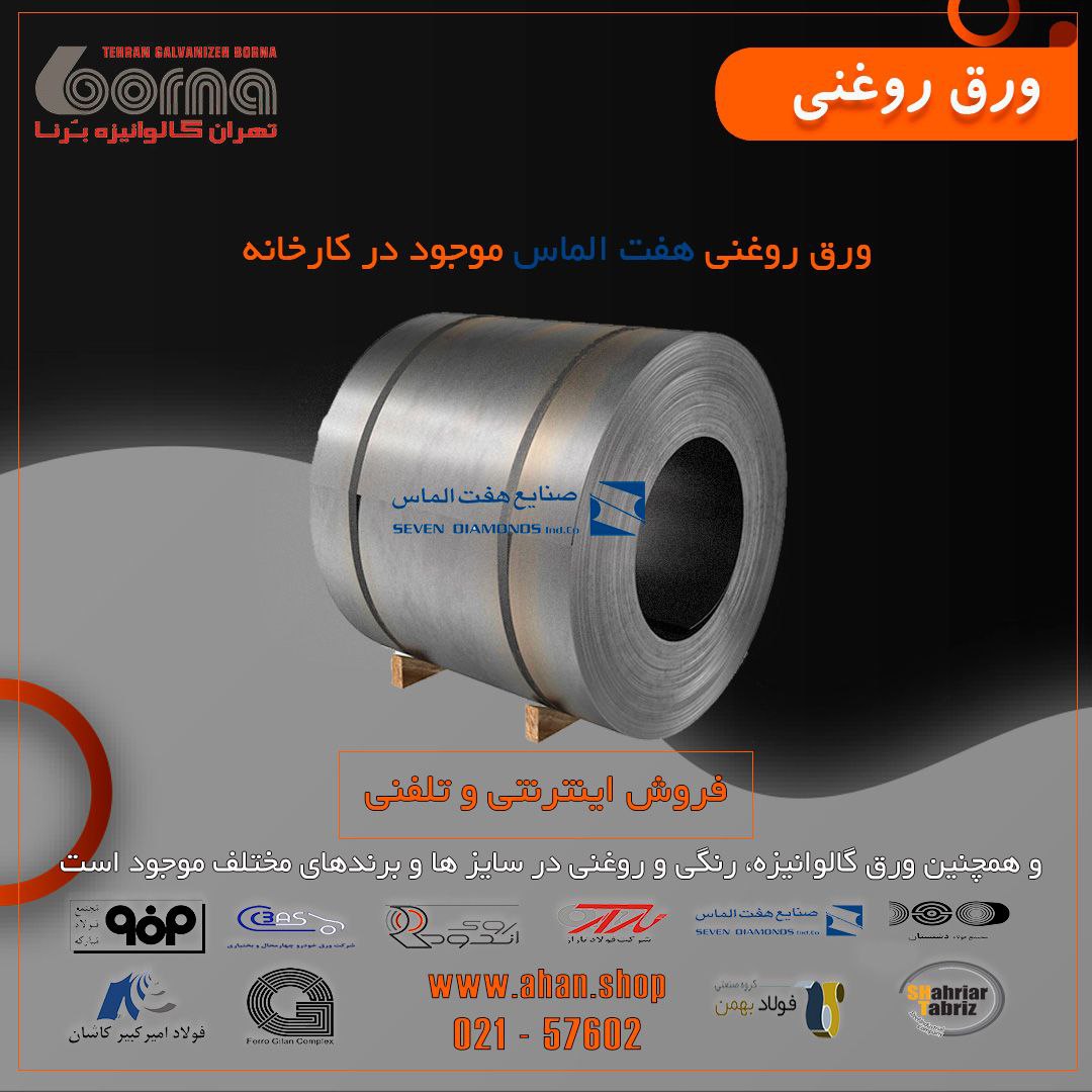 #تهران_گالوانیزه_برنا ✅ ورق روغنی هفت الماس در تهران: 💱0.50 عرض 1000 روغنی الماس 💱0.50 عرض 1250 روغنی الماس 💱0.60 عرض 1000 روغنی الماس 💱0.60 عرض 1250 روغنی الم ...