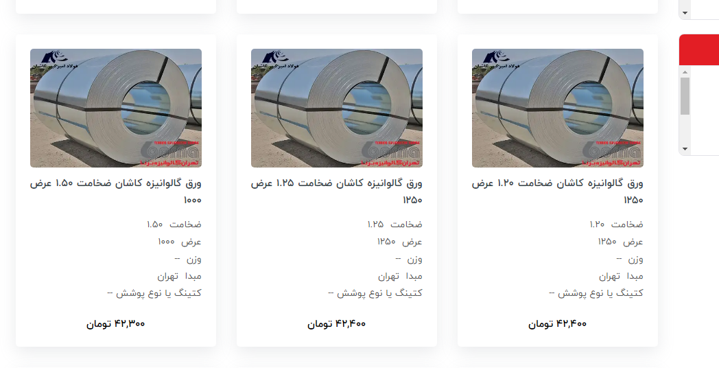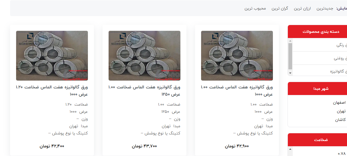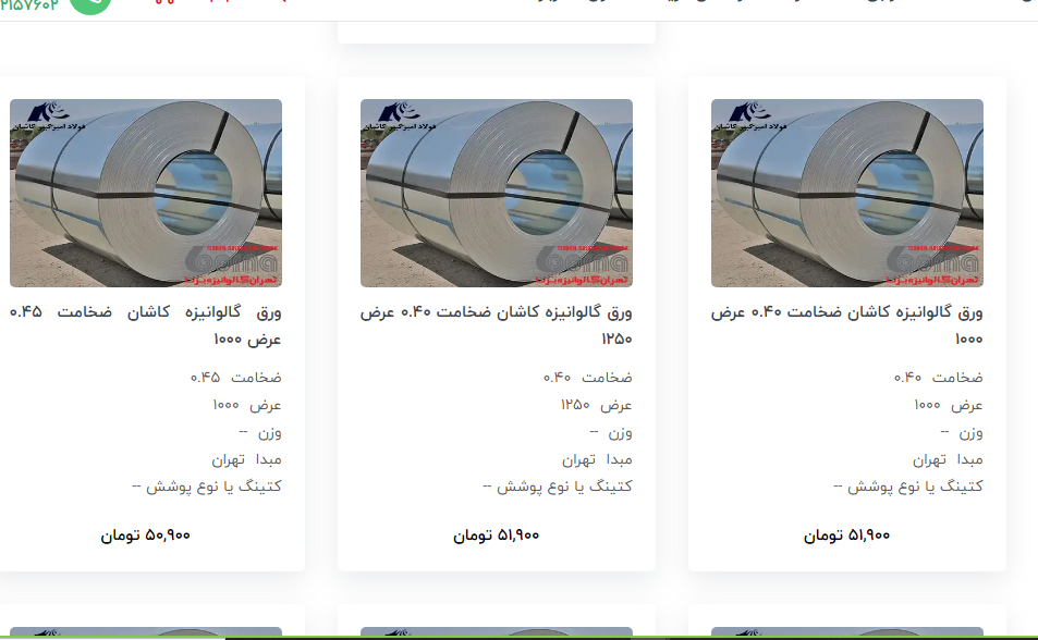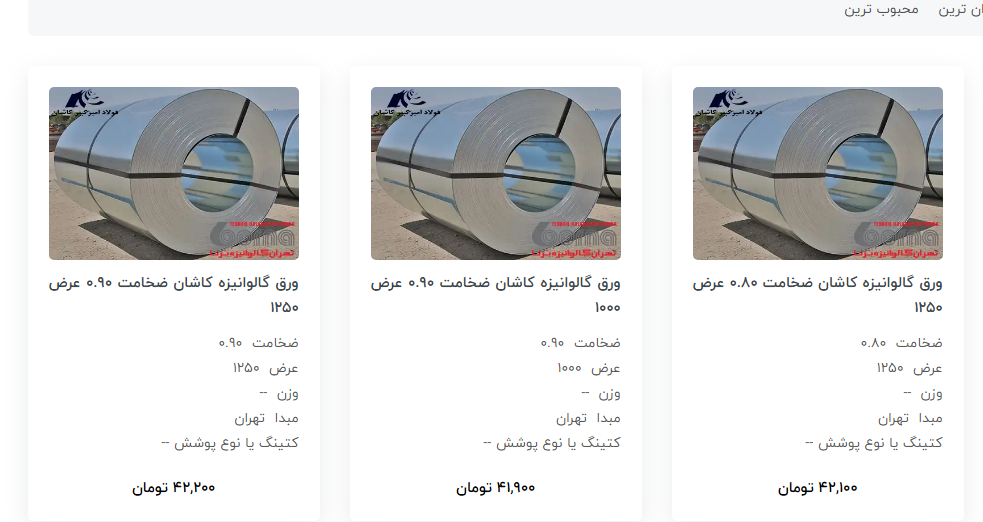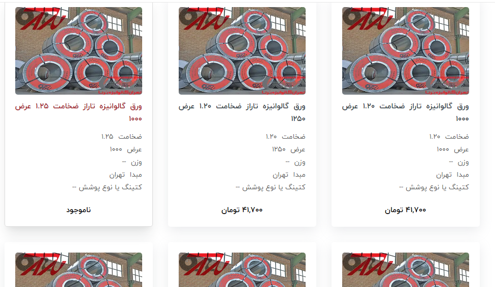 اعلام موجودی ورق گالوانیزه