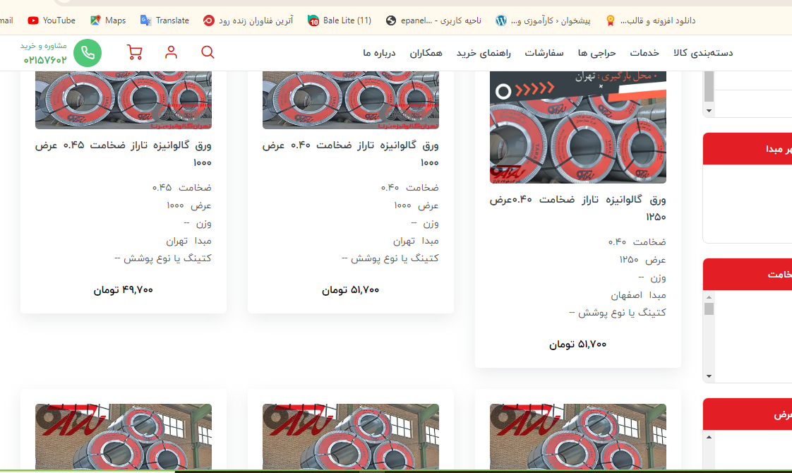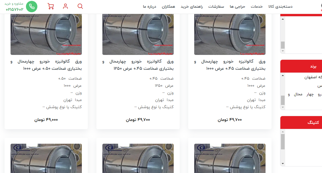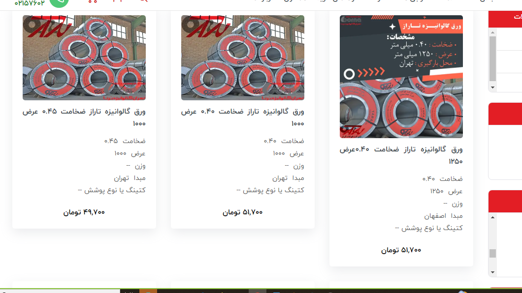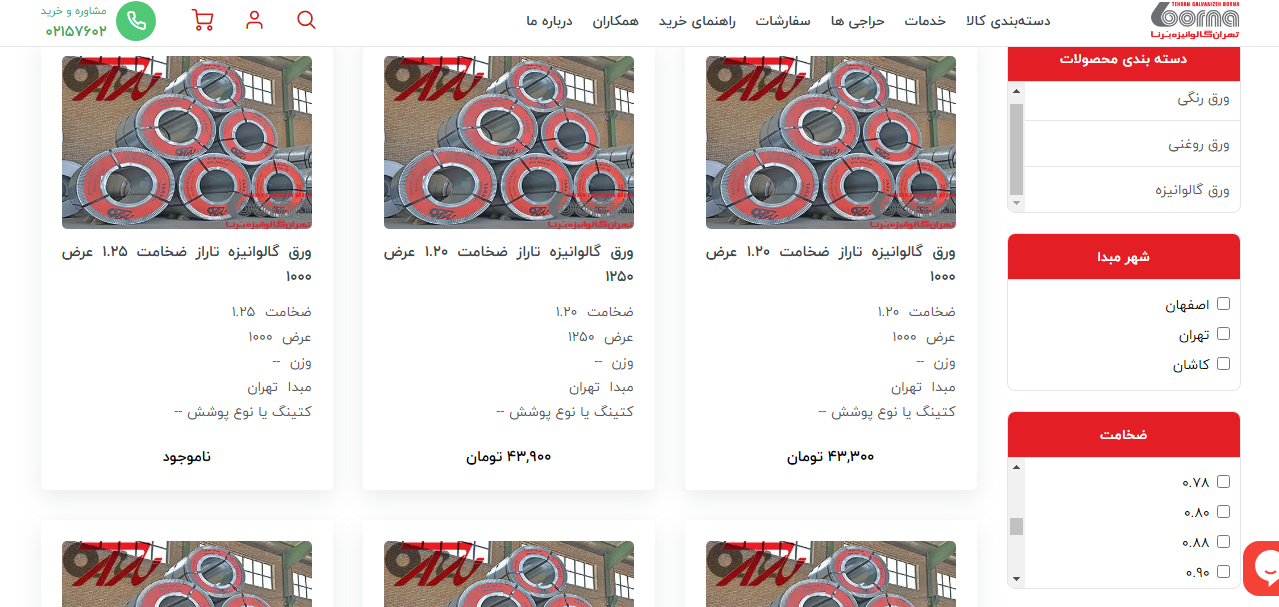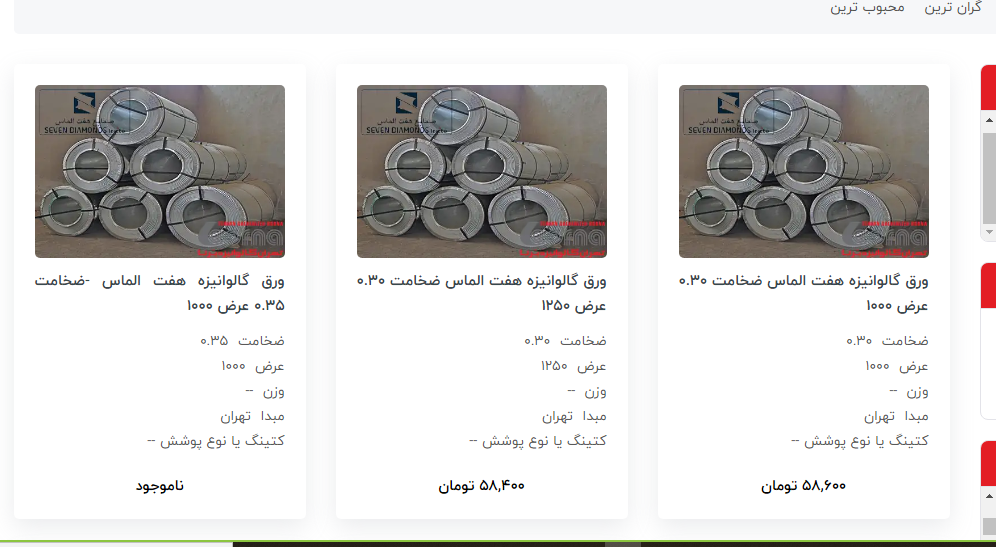 اعلام موجودی ورق گالوانیزه
