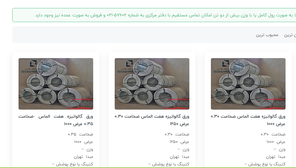 #تهران_گالوانیزه_برنا ✅ فروش ویژه ورق گالوانیزه هفت الماس 🔴ضخامت ۰.۳۰ عرض ۱۲۵۰ الماس 🔴ضخامت ۰.۴۰ عرض ۱۰۰۰ الماس 🔴ضخامت ۰.۴۸ عرض ۱۰۰۰ الماس 🔴ضخامت ۰.۵۰ عرض ۱۰۰۰ ...