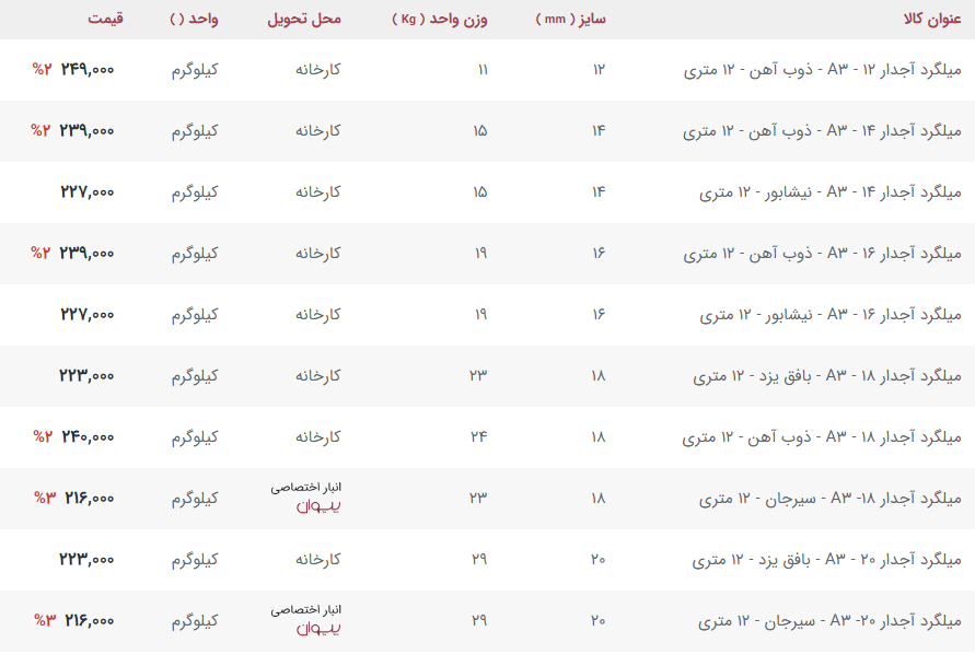 🗓 شنبه 2 دی ماه 1402 👈#میلگرد آجدار A3 ذوب آهن اصفهان 🟠میلگرد 28 ذوب ⬅ 24.100 تومان #میلگرد_ذوب_آهن مشاهده لیست قیمت : ...