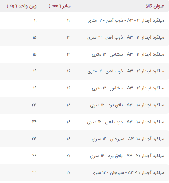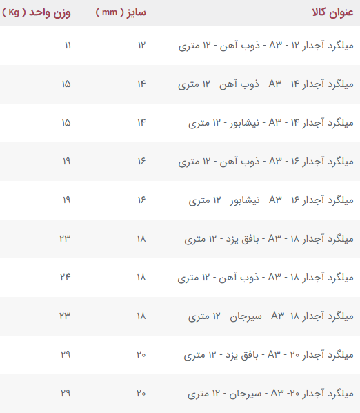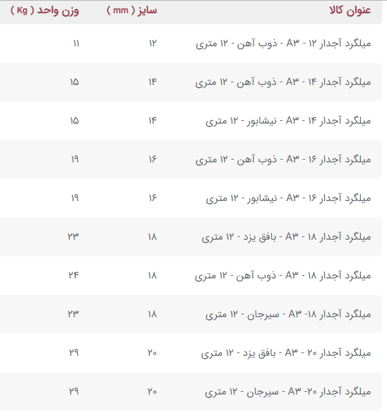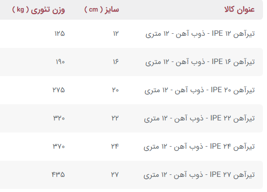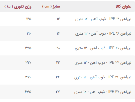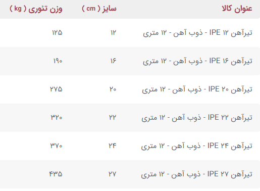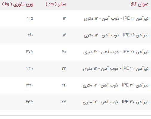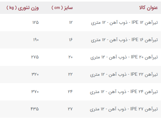 اعلام موجودی تیرآهن (IPE) ذوب آهن
