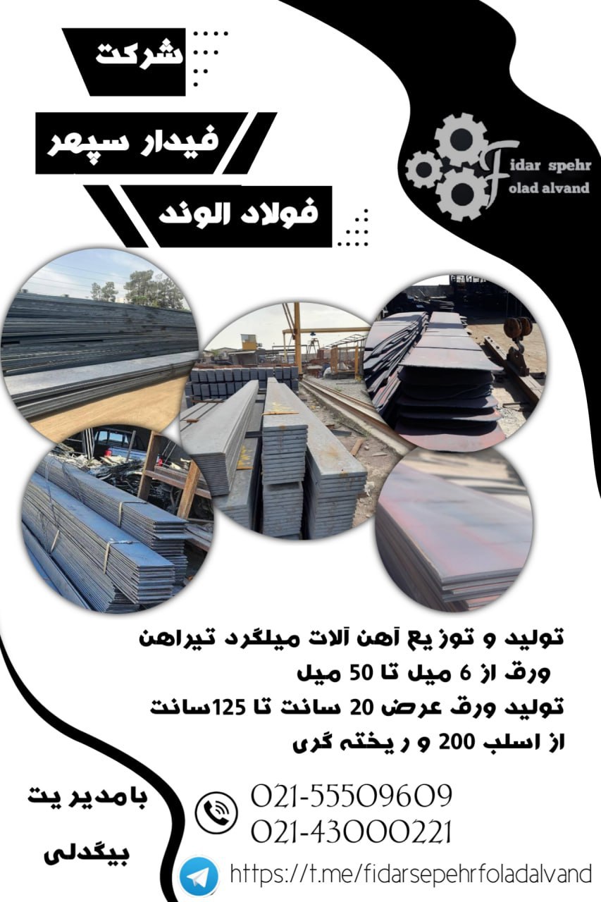 ⚜️#فیدار_سپهر_فولاد_الوند⚜️ 🔺تولید ورق نوردی عرض۲۰-۴۰-۶۰سانت ♦️با اسلب ریخته گری ۸میل ۱۰میل ۱۲میل ۱۵میل عرض ۶۰ سانت ♦️تسمه عرض ۲۰سانت ۶میل محدود ۸میل ۱۰م ...