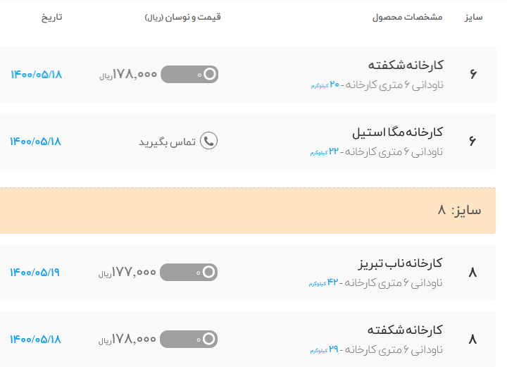 #میلگرد_آجدار کارخانه دُرپاد تبریز 🗓دوشنبه 1شهریور ماه 1400 🗓 ثابت↔️ 💠استاندارد A3💠 سایز 8 : 18400 سایز 10 : 18100 ...