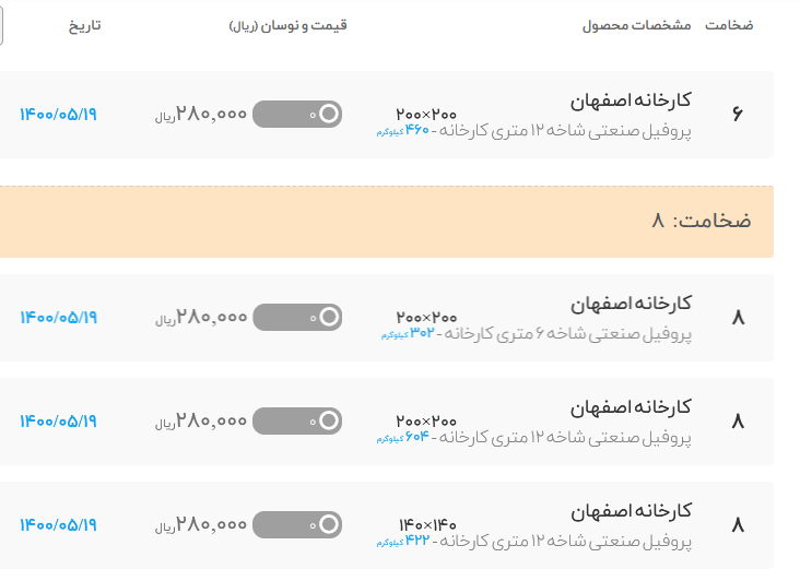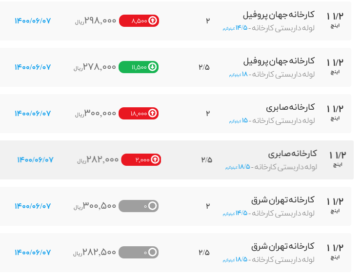 #لوله_داربستی کارخانه های کشور 🗓یکشنبه 7 شهریورماه 1400🗓 کارخانه #صابری سایز 2 میلیمتر: 30000 سایز 2.5 میلیمتر: 28200 کارخانه #صدرا سایز 2 میلیمتر: 30000 سای ...