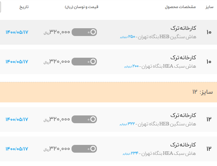 #هاش وارداتی در بنگاه تهران 🗓شنبه 17 مهرماه 1400🗓 هاش_10_سبک_ترک_32000 هاش_10_سنگین_ترک_32000 هاش_12_سبک_ترک_32000 هاش_12_سنگین_ترک_32000 هاش_14_سبک_ترک_3 ...