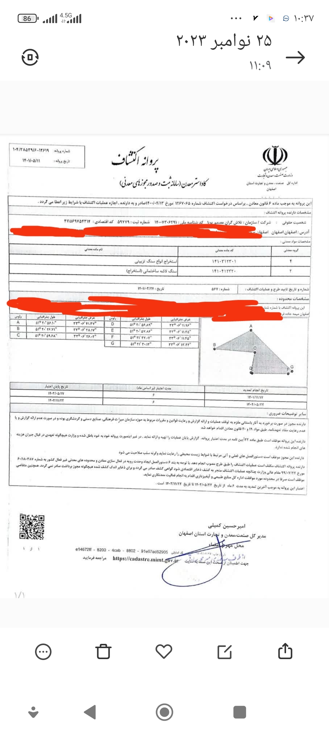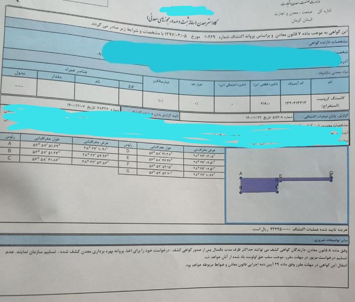 یک واحد معدن سلستین دارای دو پروانه بهره برداری مس و سلستین با خلوص ۹۶ الی ۹۸ و باریم صفر دارای تمامی مجوزهای قانونی لازم با قیمت فوق العاده عالی آماده واگذاری میباشد جهت استعلام قیمت و اطلاعات بیشتر تماس حاصل فرمائید
