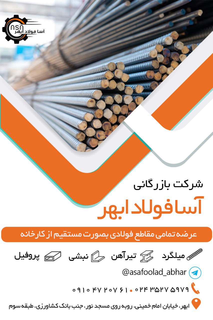 #آسا_فولاد_ابهر ▫️عرضه تمامی مقاطع فولادی بصورت مستقیم و بدون واسطه ▫️به قیمت کارخانه ▫️بصورت عمده و خرده ▫️میلگرد ▫️تیرآهن ▫️نبشی ▫️پروفیل 🔺عرضه میلگرد میانه ...