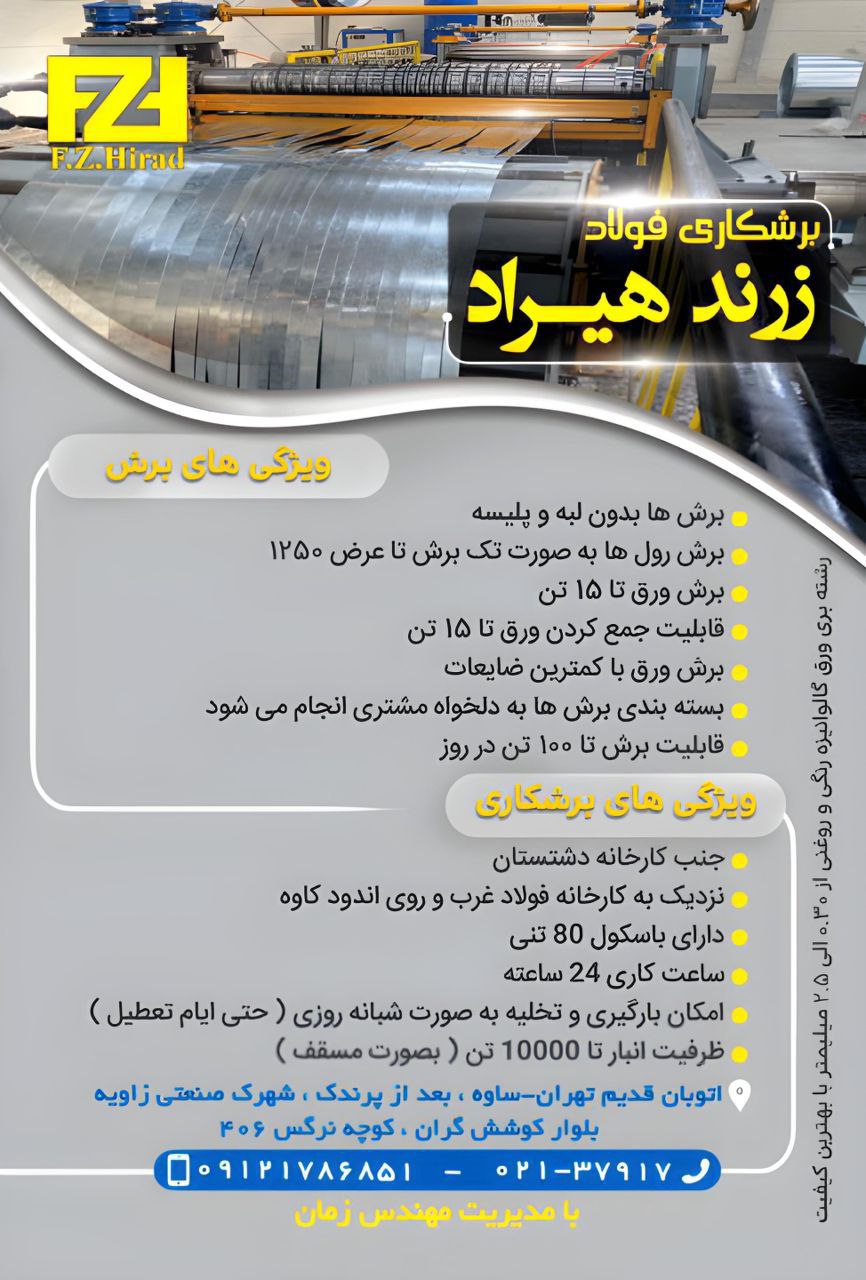شرکت فولاد زرند هیراد در حوزه برشکاری جز برترین شرکت در این زومره قرار دارد .ما همیشه اماده خدمت رسانی به صورت ۲۴ ساعته (حتی ایام تعطیل) به شما عزیزان می باشیم . شرکت فولاد زرند هیراد دارای کادر مجرب و حرفه ای در حوزه کاری خود می باشند .