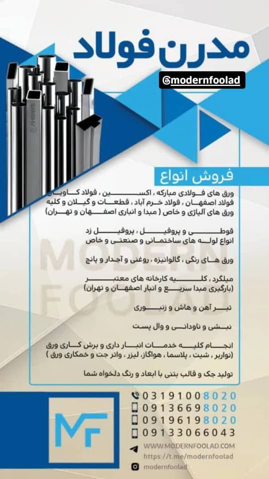 🏗مدرن فولاد 🏗 دارای انبار تخصصی ورق در شاپور صاحب بار 🕹 کاویان : سایز 8 الی 45 عرض 1250 در طول 6 متر و ابعاد مختلف 🕹 اکسین : سایز 8 الی 30 عرض 2000 در طول ...