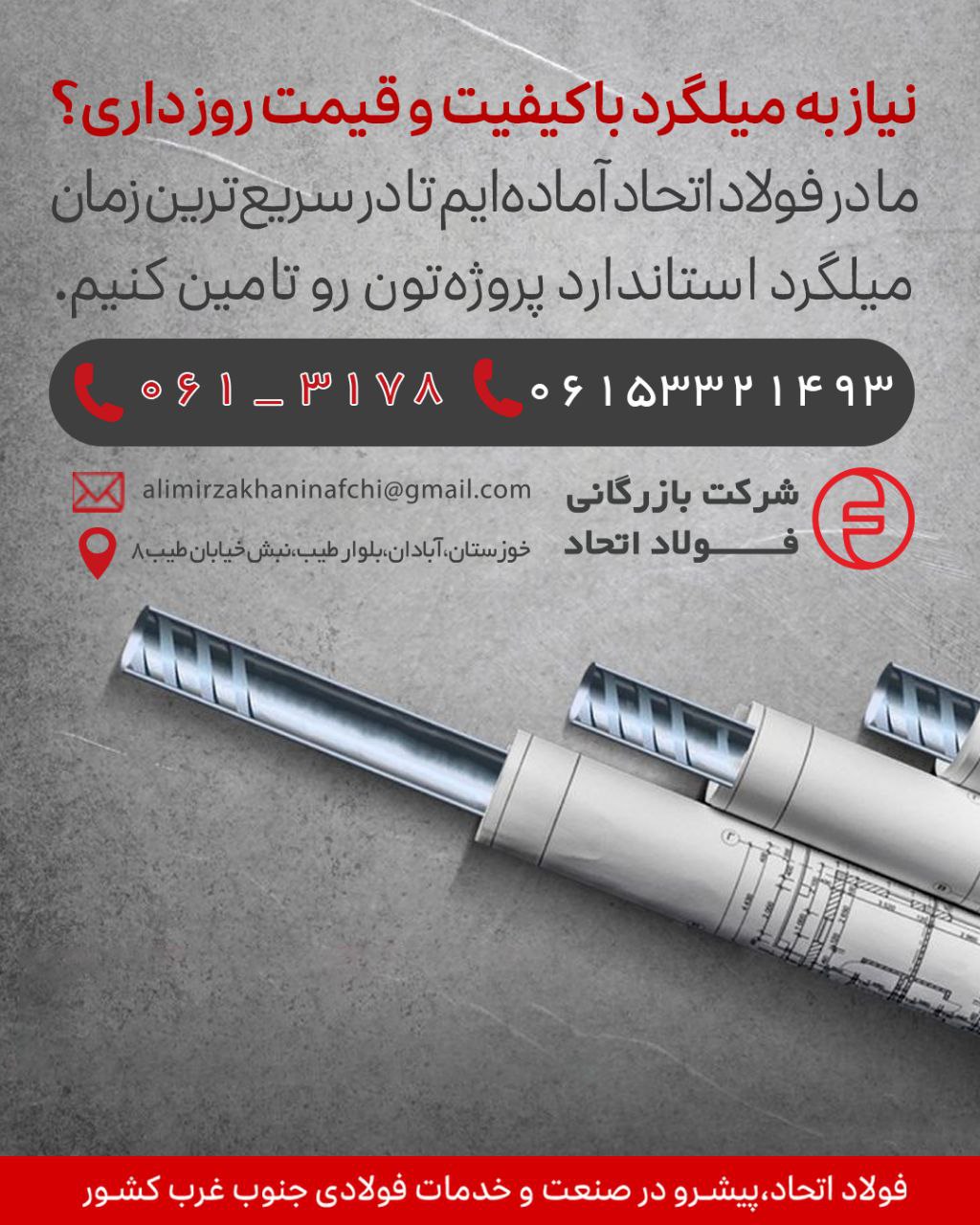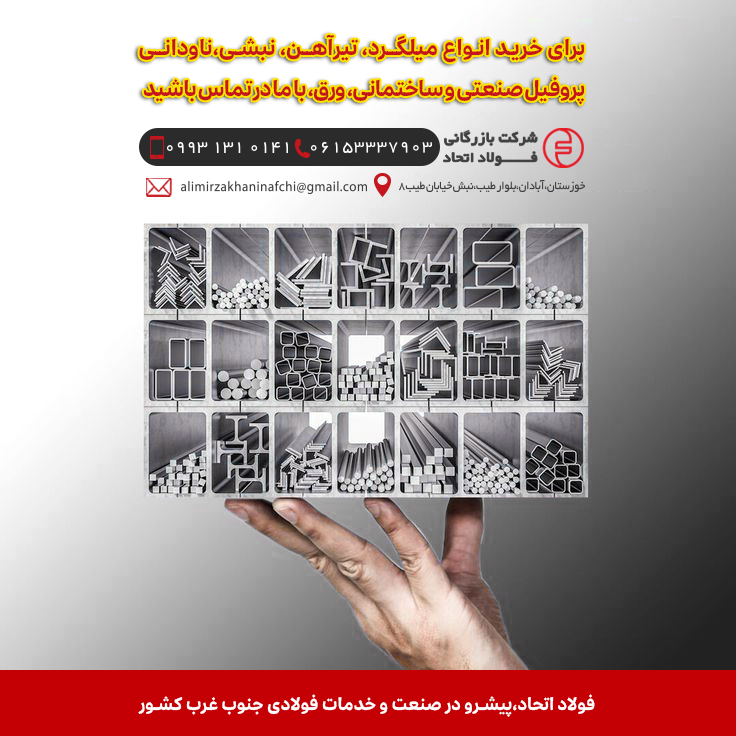 عرضه کننده انواع آهن آلات ، تیرآهن ، میلگرد، نبشی ، ناودانی ، سپری ، پروفیل ، ورق و... بارگیری از کارخانه و انبار ارتباط با ما ( کارشناس فروش: خانم نصاری٬موسوی) 09931310141 06153337705 06153337709