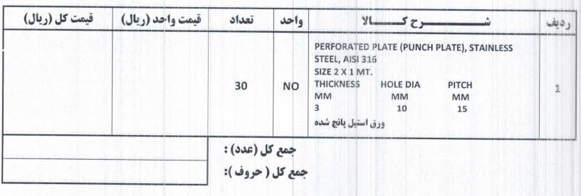 خریدار ورق استیل پانچ شده با مشخصاتی که در تصویر ذکر شده میباشیم.