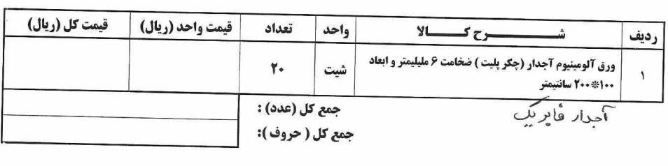 خریدار ورق آلومنیوم با مشخصات ذکر شده در تصویر میباشیم.