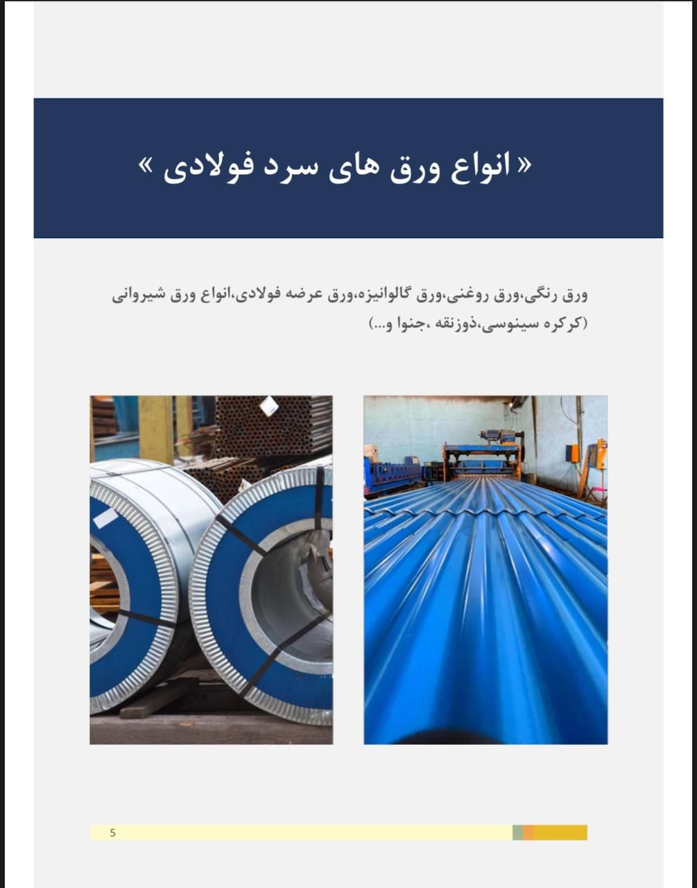ورق سرد : گالوانیزه ، روغنی ، رنگی ، قلع اندود