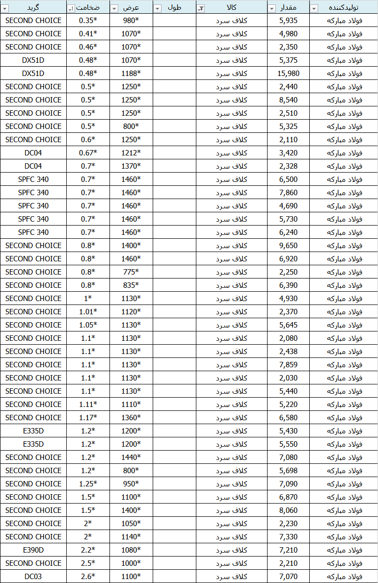 ورق 0.18 , 0.20 عرض یک متر چینی کتینگ 80 نرم هاردنس 65 انبار تهران 50 تن