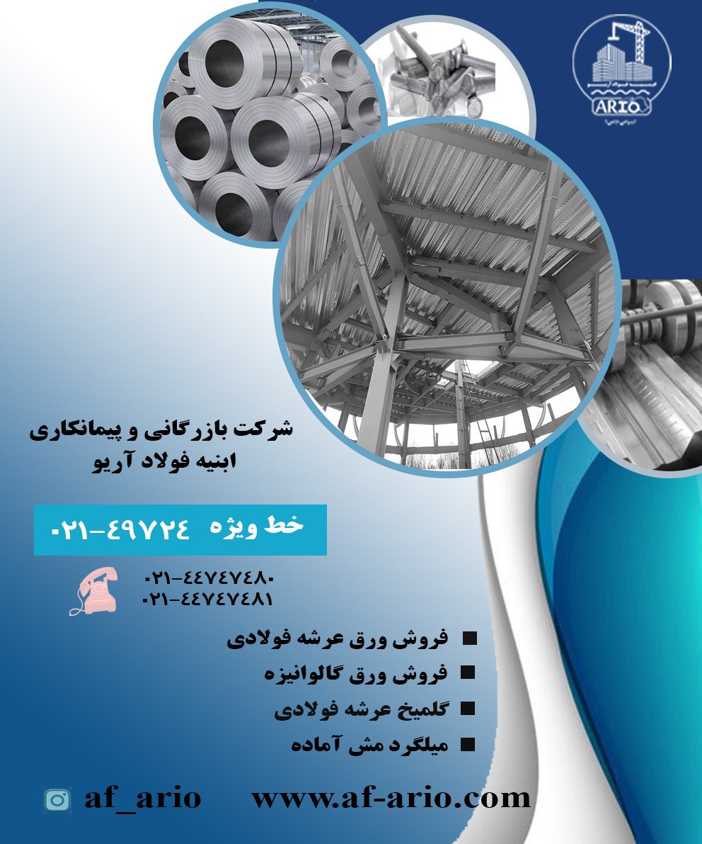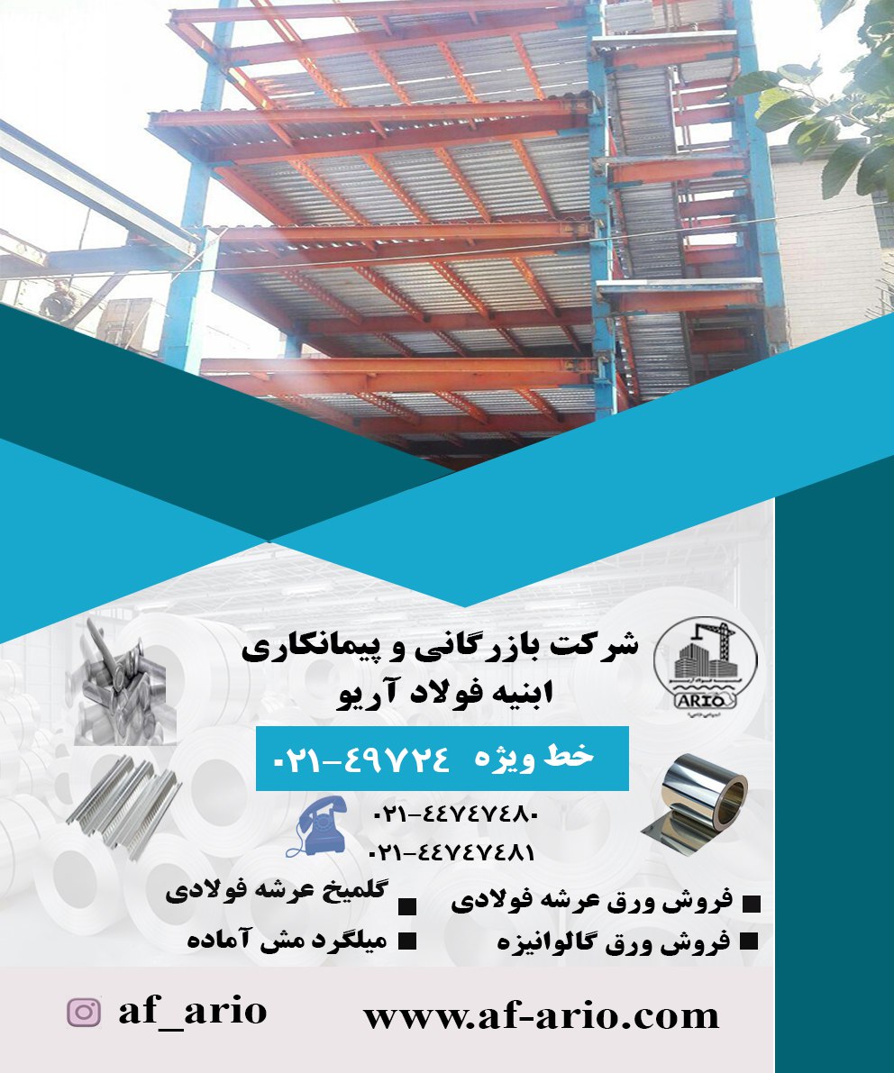 #ابنیه_فولاد_آریو ✨ تامین کننده انواع ورق گالوانیزه و رنگی (در طرحهای عرشه فولادی، شادولاین، کرکره و ...) ✨ عاملیت فروش گلمیخ فولاد آلیاژی ✨مجری تخصصی ...
